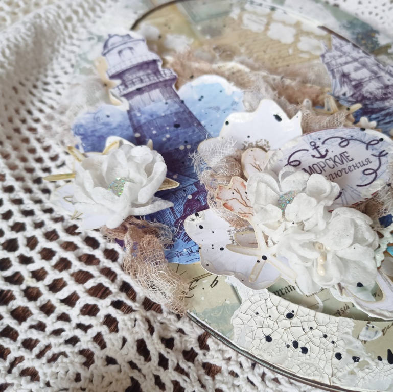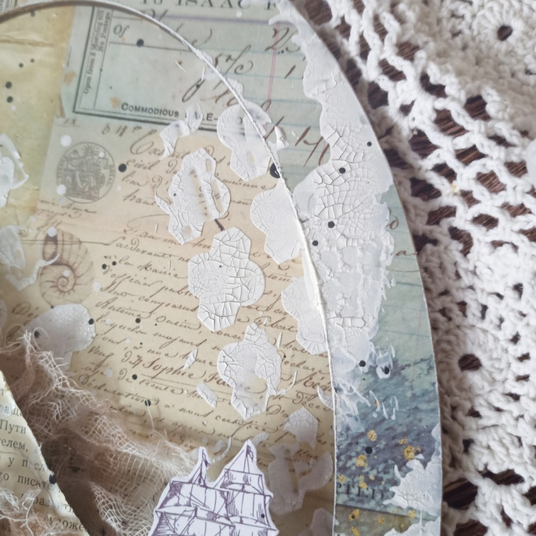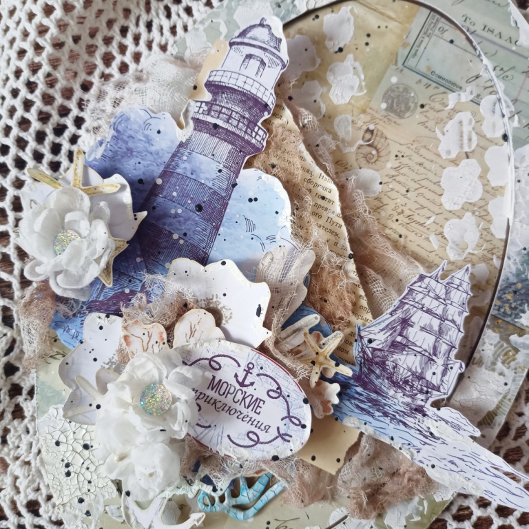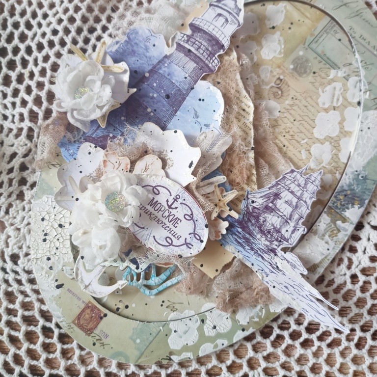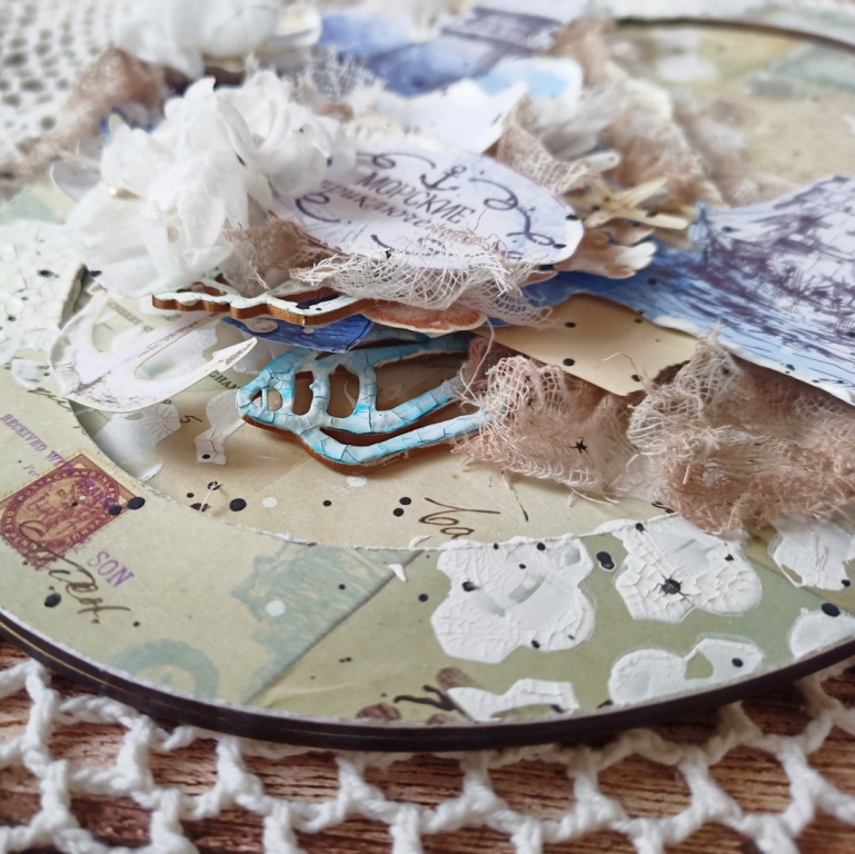14.05.2021 16:48Моя новая любовь - это текстурная кракелюрная паста от ScrapEgo. Этими волшебными трещинками хочется покрыть всё. А ещё я наконец-то добралась до артбордов. Мне понравилось, что можно выбрать уже готовую форму и спокойно её декорировать, не теряя время на вырезание из картона. И "приправив" это морской бумагой, чипбордом, цветами и вырезалочками, у меня получился вот такой винтажный холст.