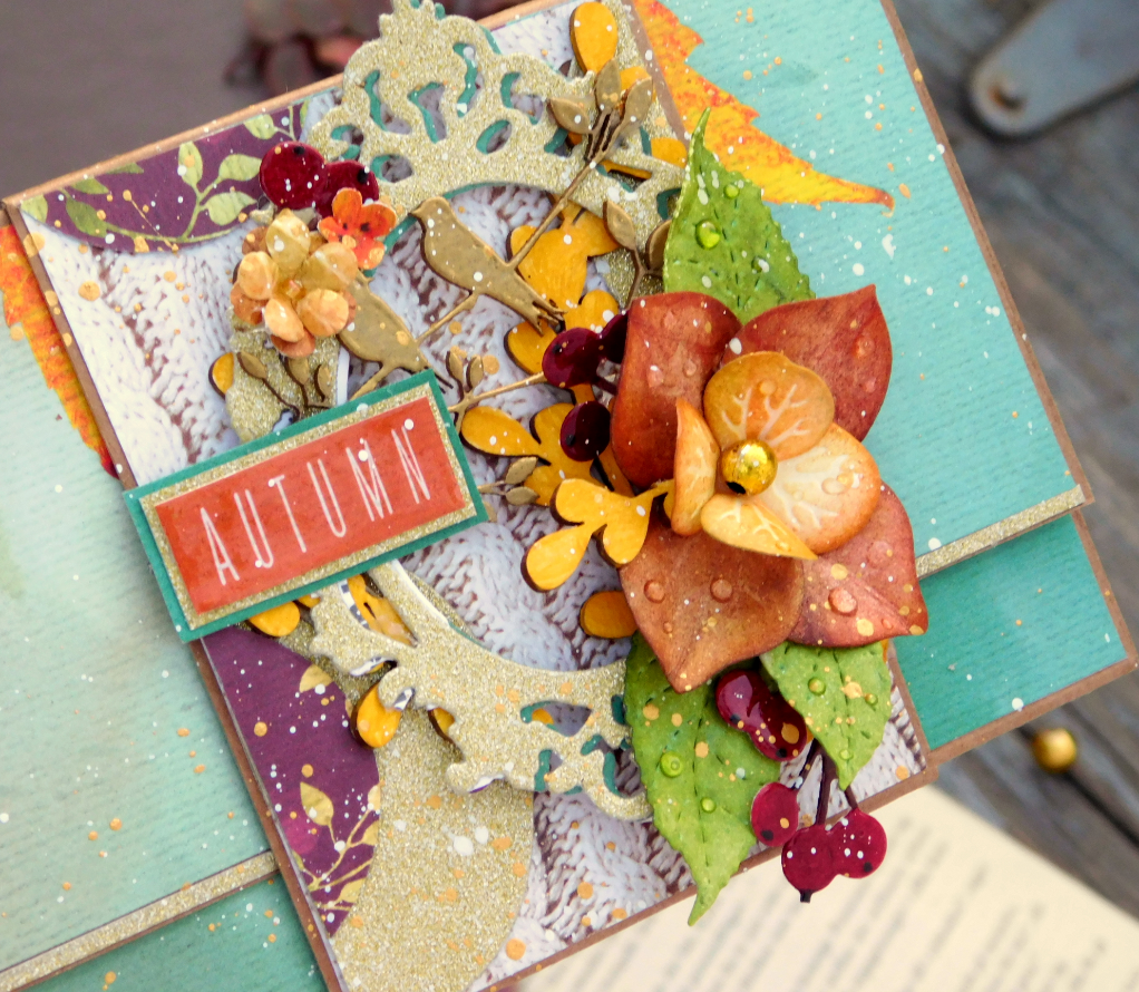 необычной осенней бумаги от Paper House. У меня из неё получилась парочка работ