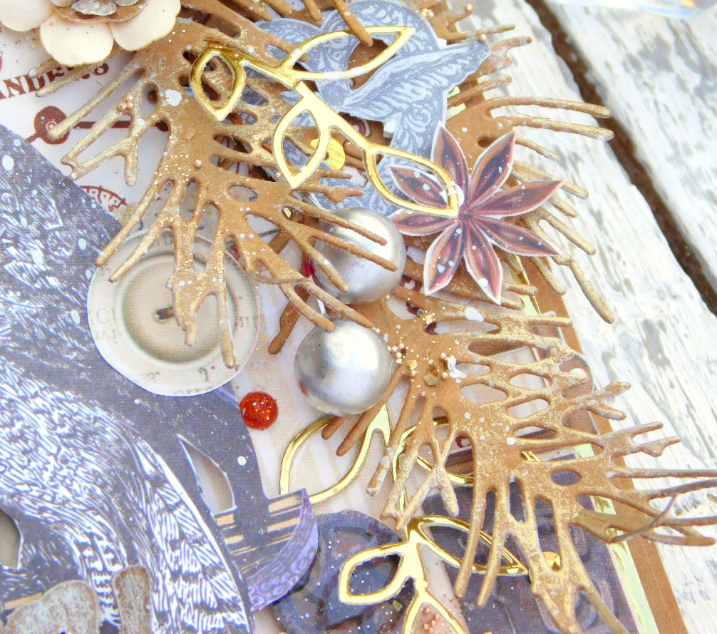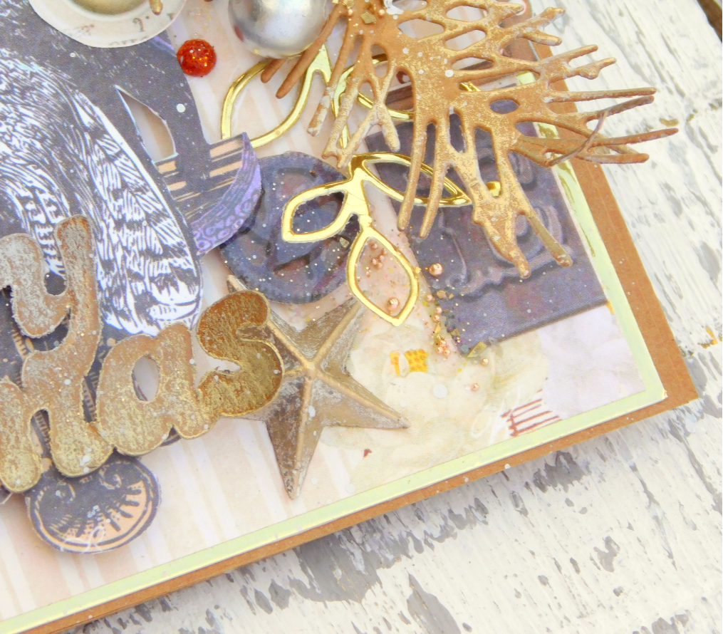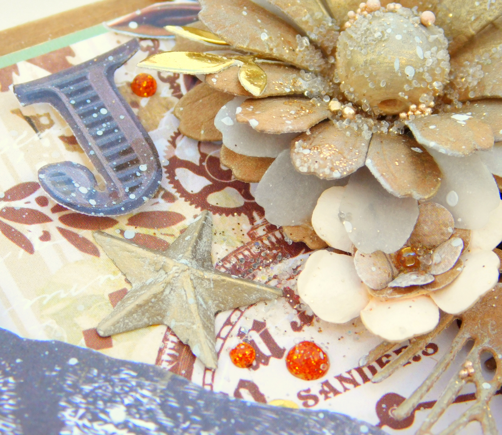 Вот открыточка, которую я делала с вами в прямом эфире. Сфотографировать её во всей красе, то есть в разложенном виде, мне не дал сумасшедший ветер ( еле лёжа её сфоткала))). Добавила всё-таки ещё парочку цветочков, отливки из глины и ещё совсем немножечко мелочей.
