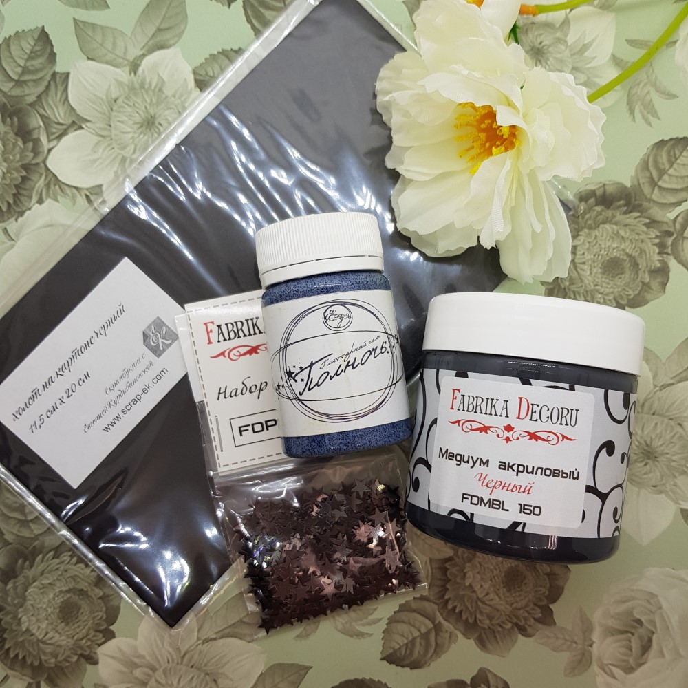 В работах микс-медиа черный цвет часто служит основой композиции. С его помощью художники на полную проявляют фактуру и текстуру используемых декоративных материалов. Воски, топпинги, перламутровые пудры, покрытия со специальными эффектами, гели и пасты для декора заиграют новыми красками на темной основе базового черного цвета. Создать прекрасный темный фон для работ в стиле миксмедиа помогут грунты и гессо в черном цвете, например, от таких производителей, как ScrapEgo или Фабрика Декора.