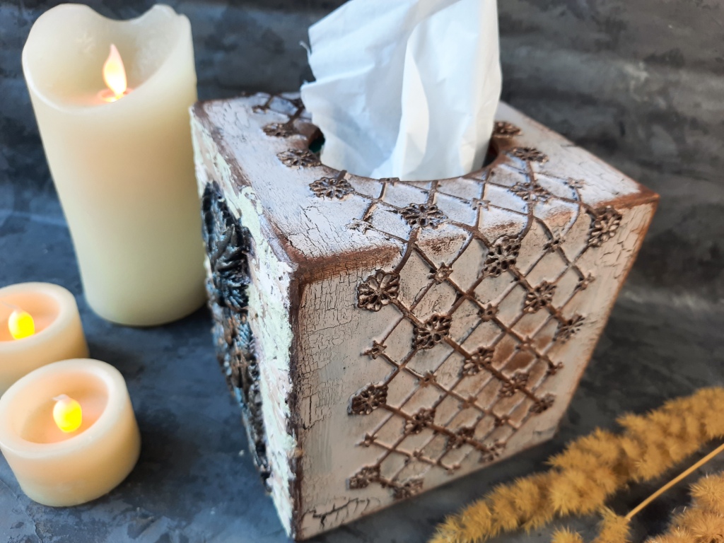 07.11.2020 11:48Було настрій поворожити з фарбами і пастами і ось, що вийшло) Я використовувала акрилові фарби для декору від Rosa, грунт, текстурну пасту, велюрову фарбу, кракелюрний і акриловий медіум від Фабрики декору й віск від Prima.