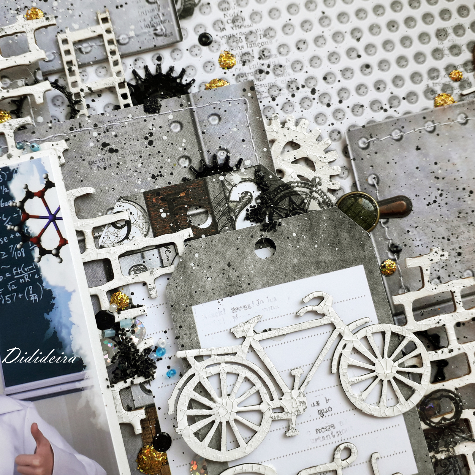 Используемые материалы:Набор скрапбумаги Grunge&Mechanics 30,5x30,5см от Фабрики Декору, Наполнитель для шейкера голубой-серебро, Пайетки круглые, золото, 6 мм, Набор чипбордов "Мальчишке", 10*15 см от Фабрики Декору, Кракелюрная краска Белая 30 мл ScrapEgo, силиконовый молд Шестеренки, 78 мм