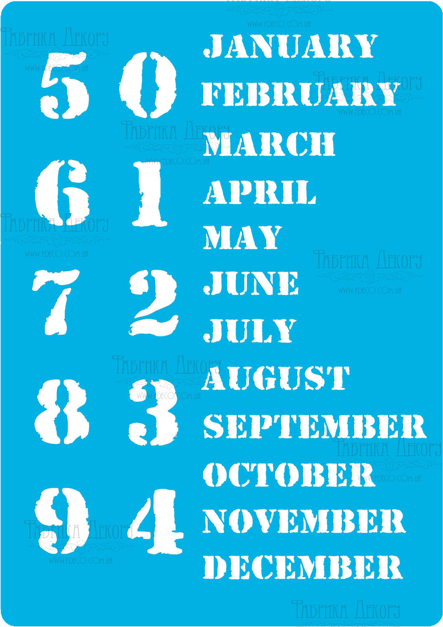 9Трафарет багаторазовий 15x20см Вічний календар -англійський # 203, Фабрика Декору