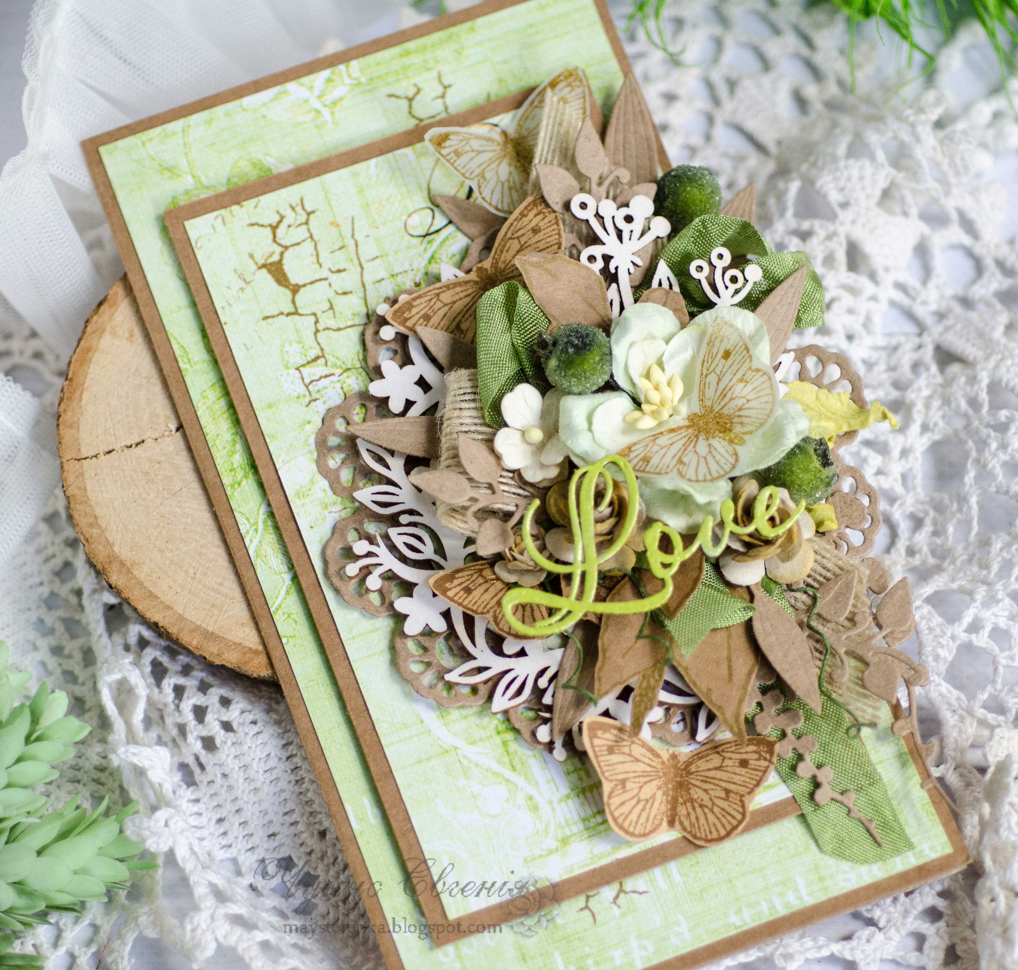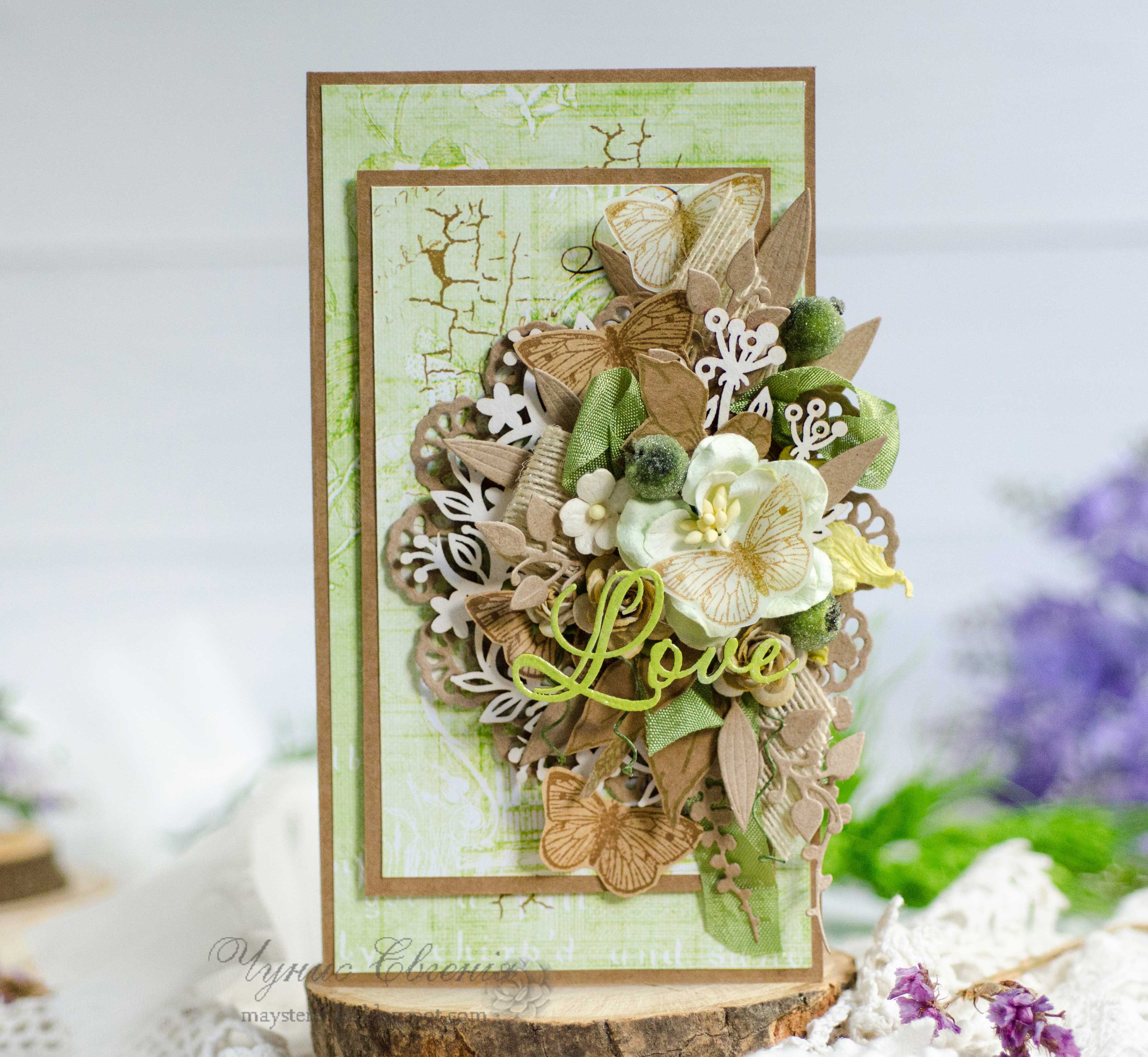 Сьогодні у мене літня листівочка з вінтажненької Примочки. Папір