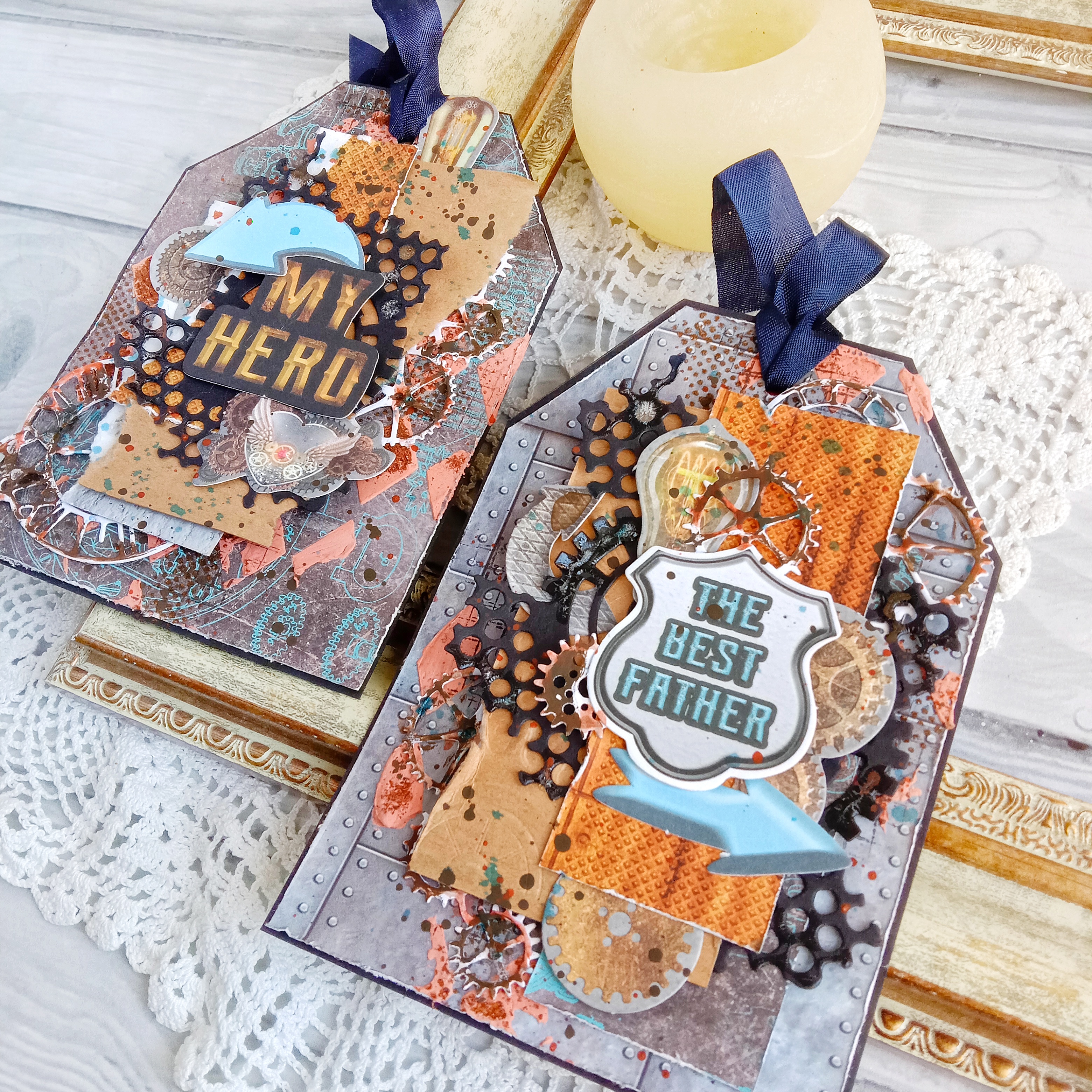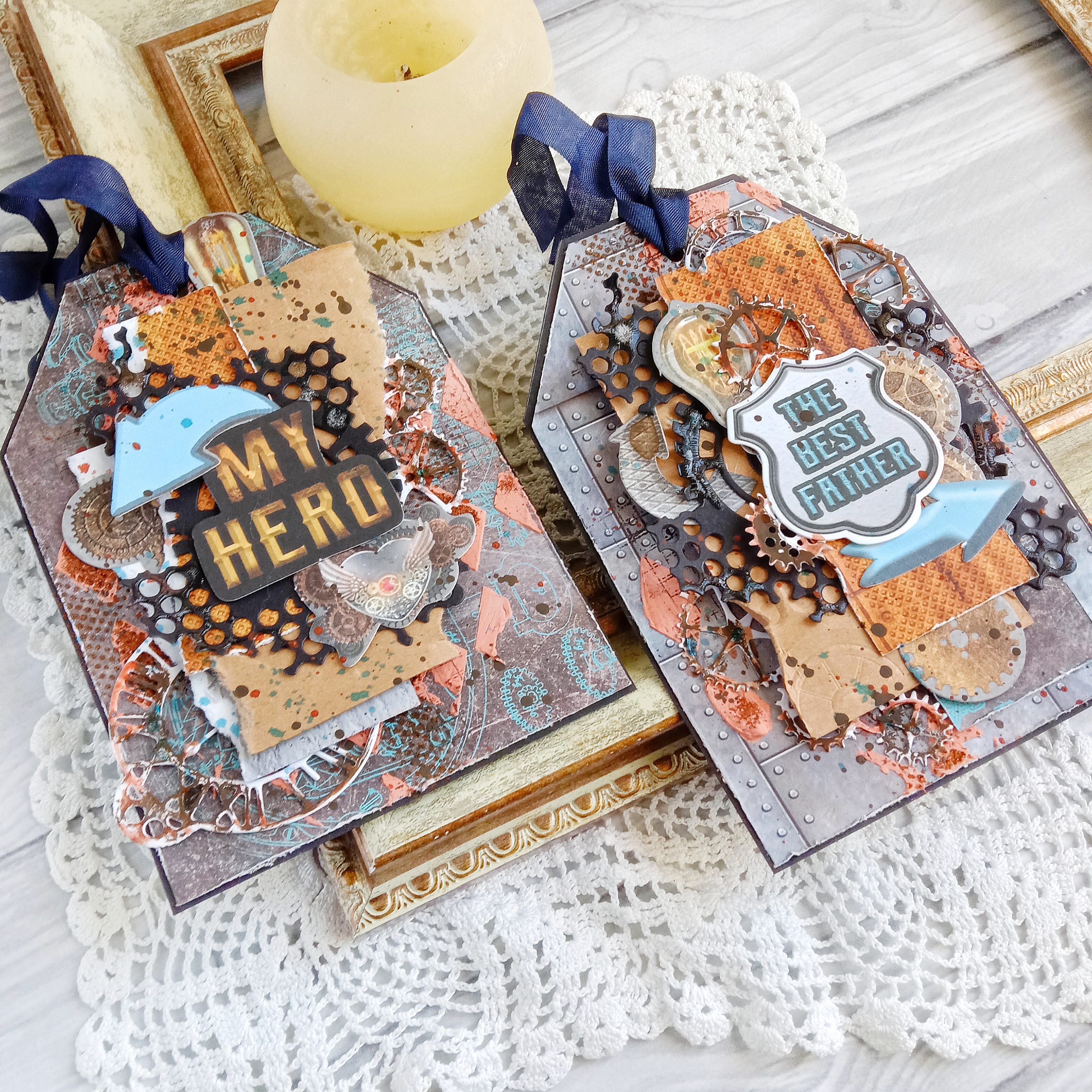 Привіт друзі! Я не часто роблю чоловічі роботи, але дуже люблю цей процес. Це обов'язково повинна бути робота з фарбами, пастами, тріщинами та іншими атрибутами світу мікс-медіа. Сьогодні покажу як робила подарункові теги для чоловіків. Вони будуть прекрасним доповненням до будь-якого подарунка, замінять листівку, адже на зворотному боці можна написати побажання. Так що будемо готуватися до свят разом зі мною @shirninaviktoriya і магазином @tvorcha_com.