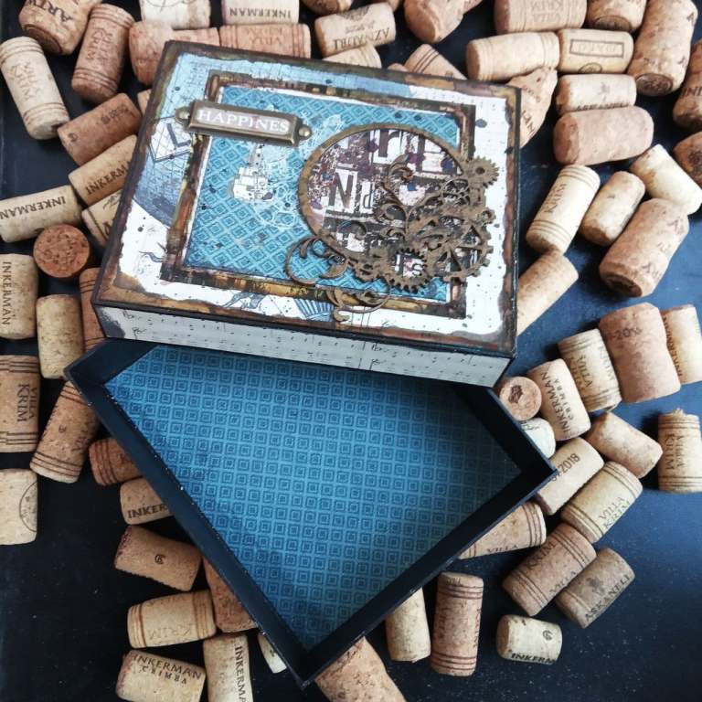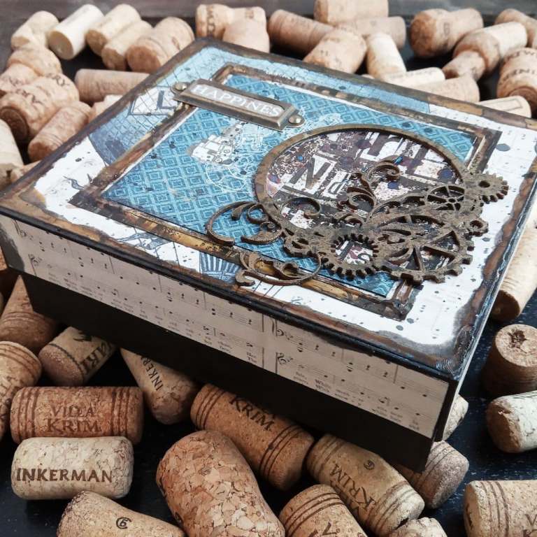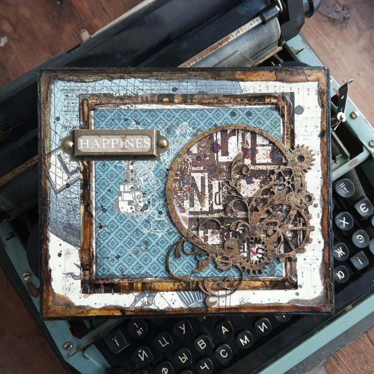 Основу моделювала з нуля, грунтовані чорним грунтом, а далі магічний танець паперу з чоловічих і вантажних колекцій, декупажних карт, алкогольних чорнила і кракелюров. І ось стильна штучка вже вирушила радувати свого власника!