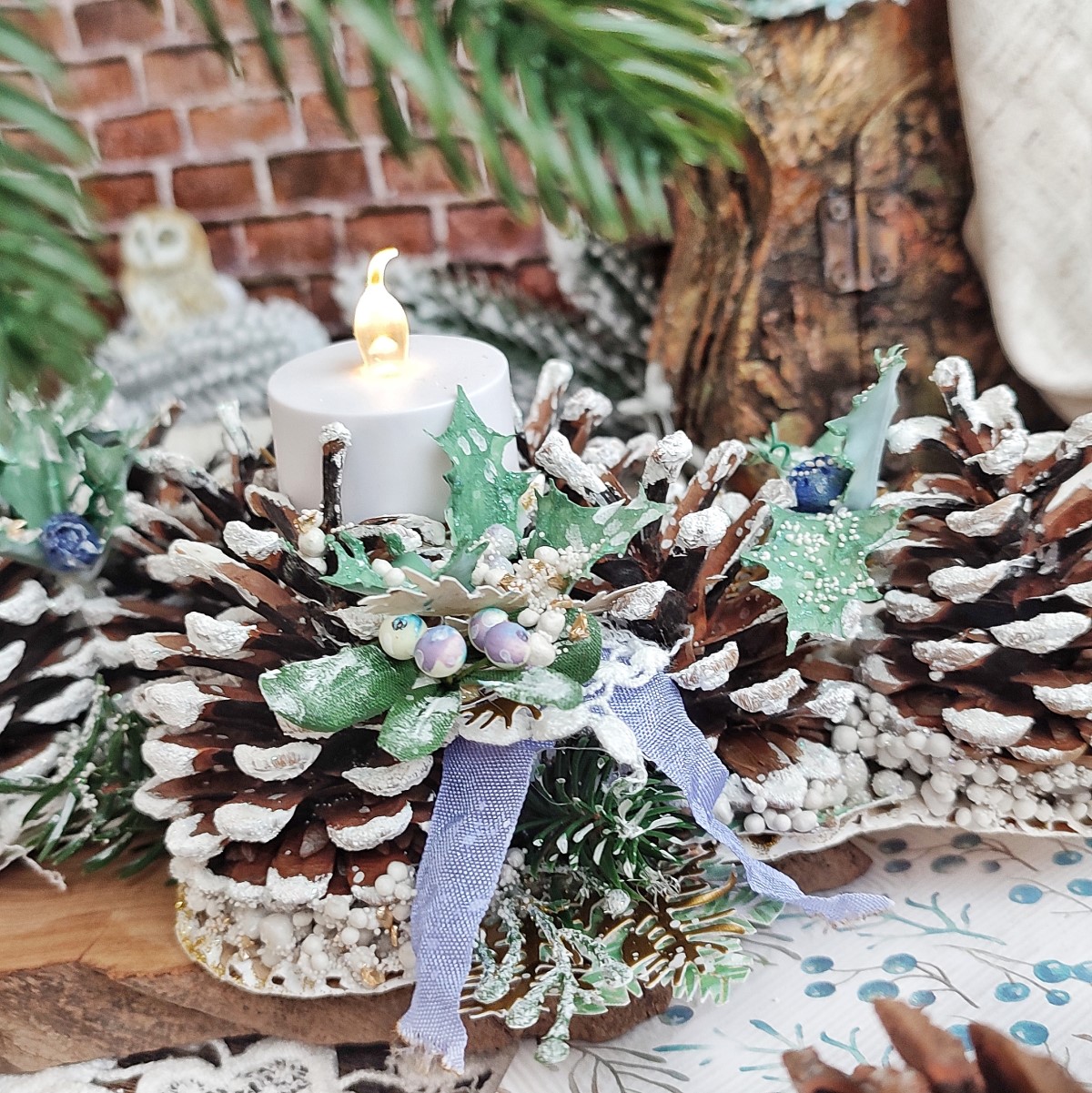 06.01.2022 11:42Використовувала нову зимову колекцію Маджента, шеббі-стрічку, білий гессо скрапего, гліттер, силікон для клею-пістолета, золоті посипання-камінчики: