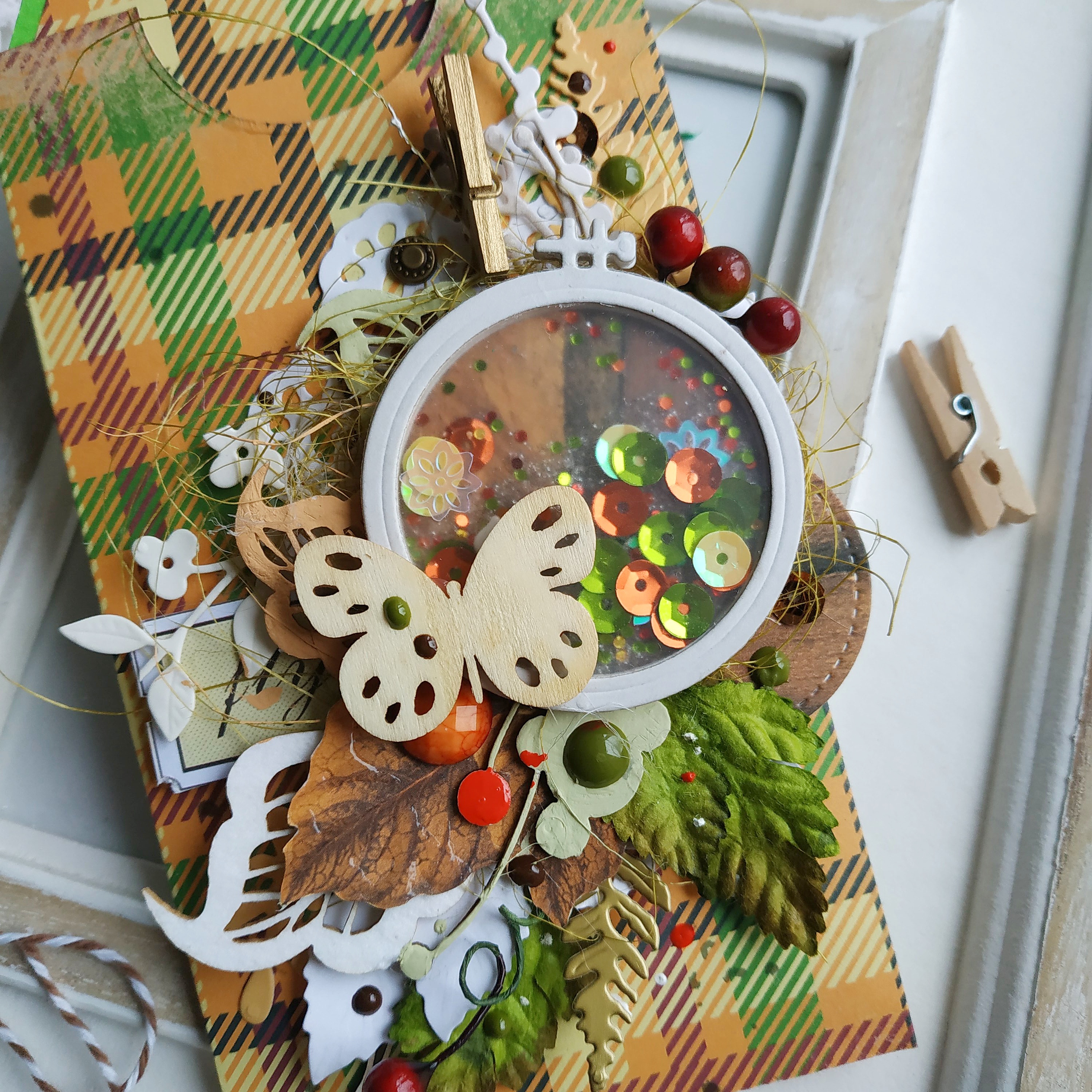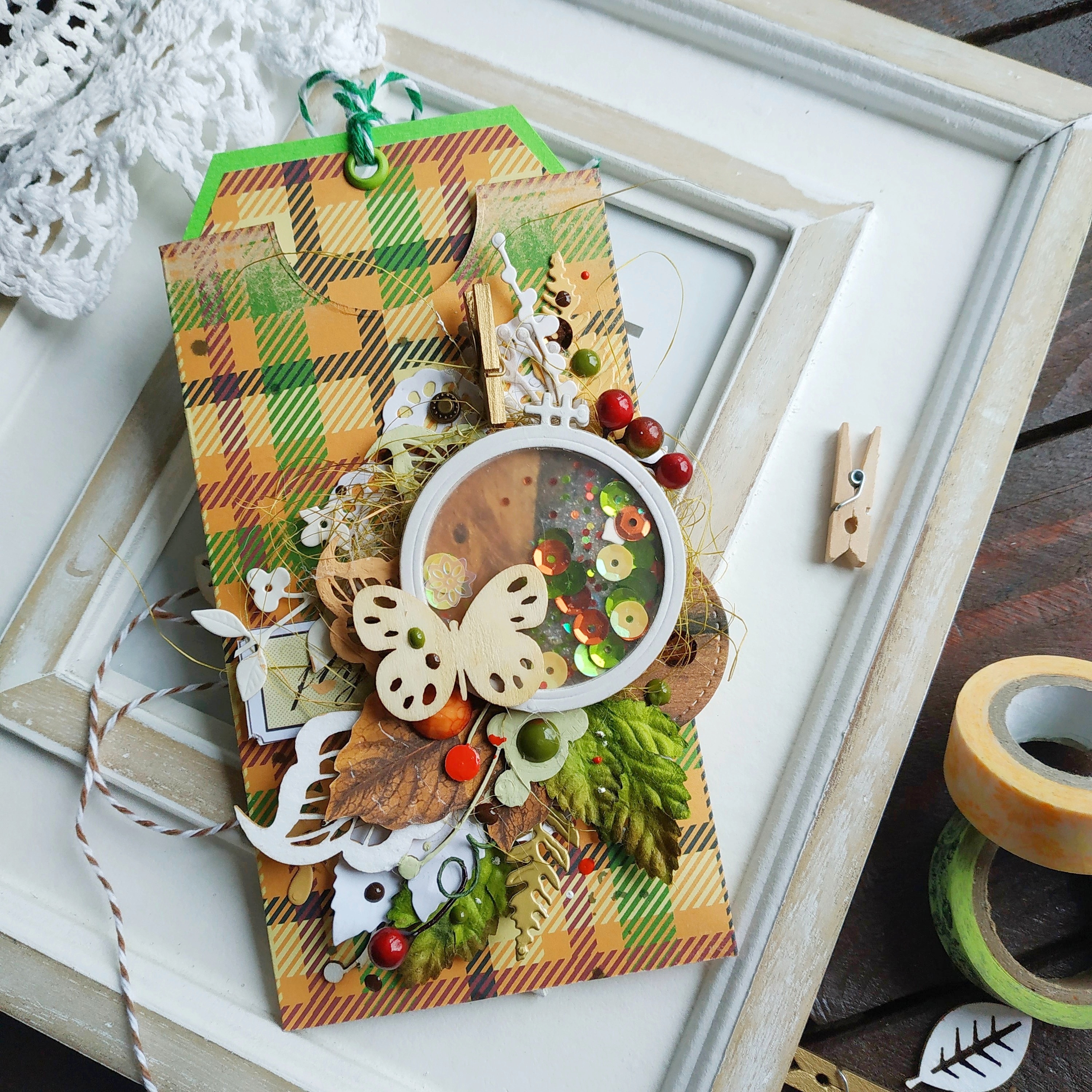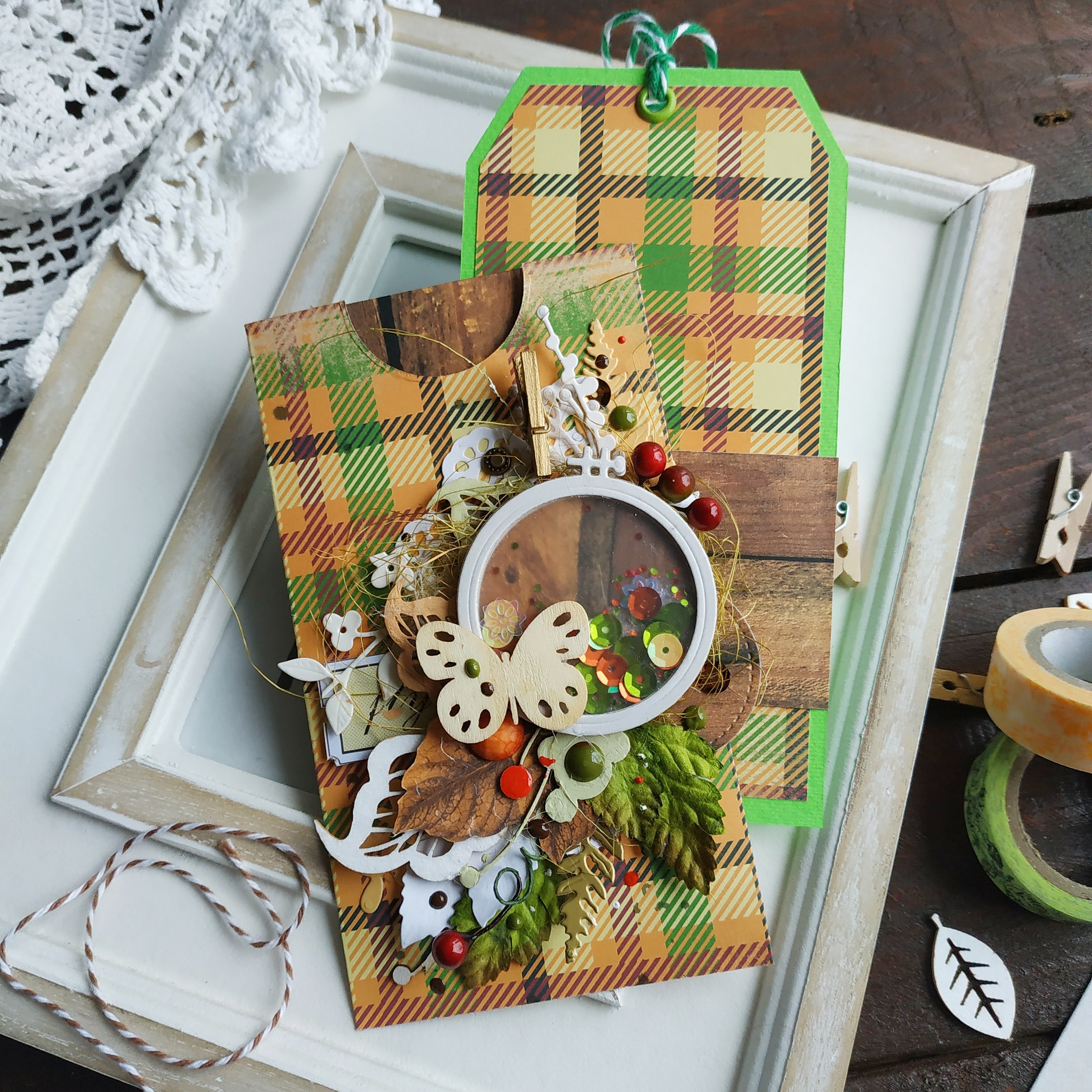 Мой конверт для молоденькой девушки-подростка, и чтобы не было совсем скучно добавила шейкер, пусть шуршит, как листья под ногами.