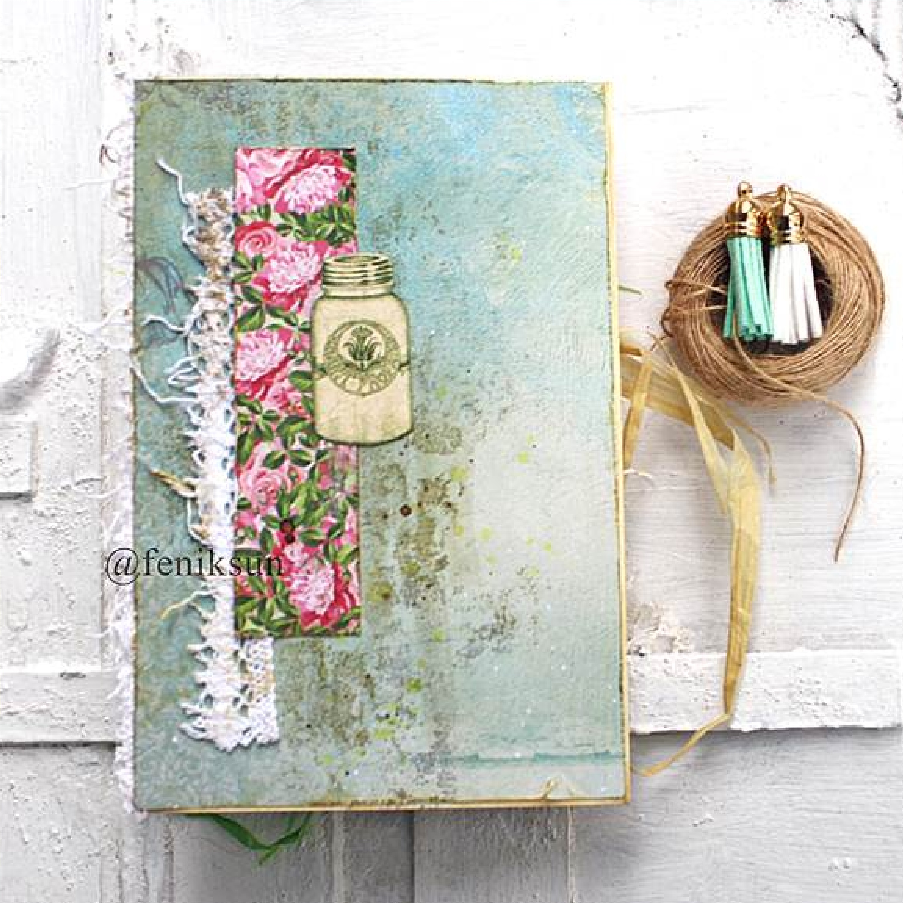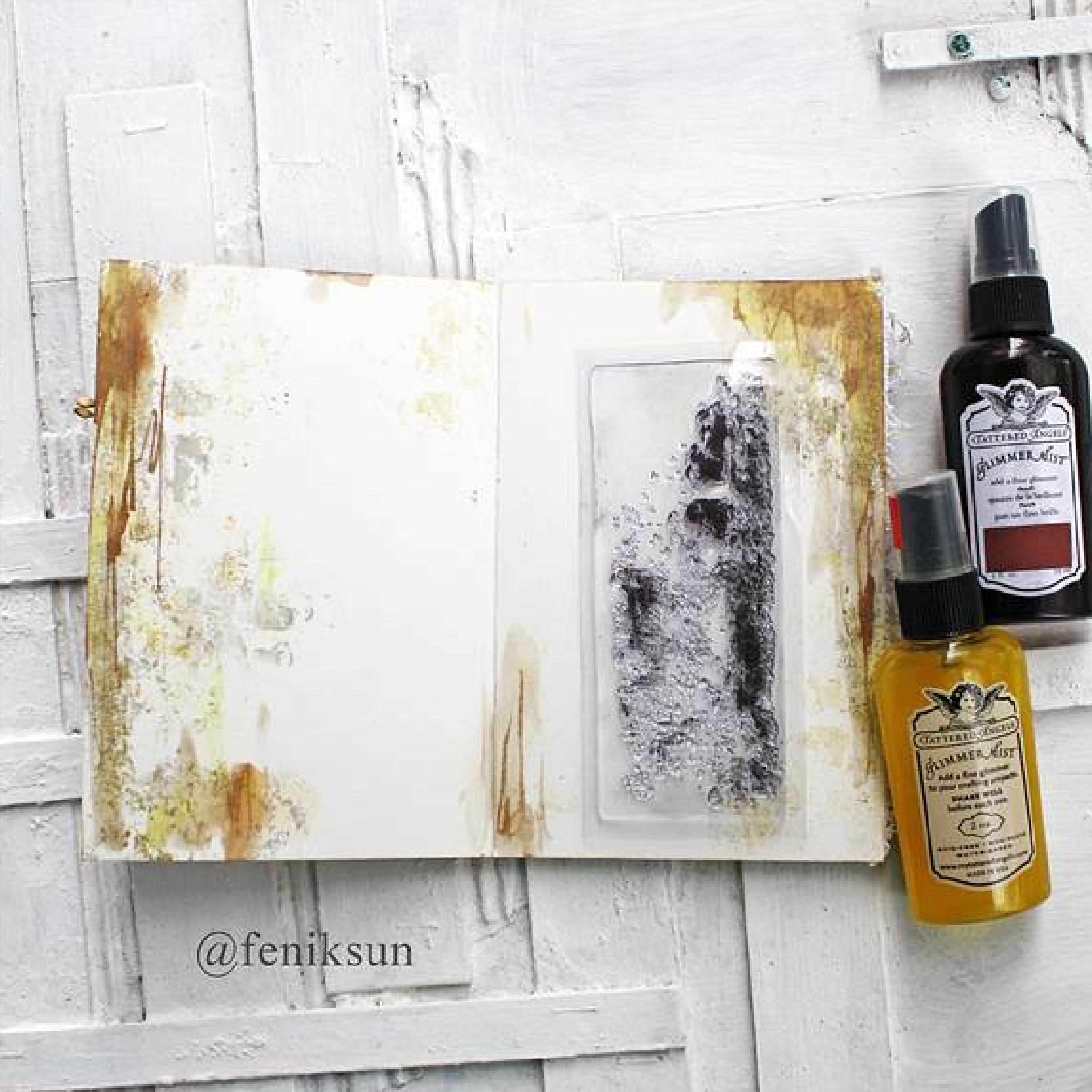 Внутри спреями и штампом создана атмосфера старинной бумаги.