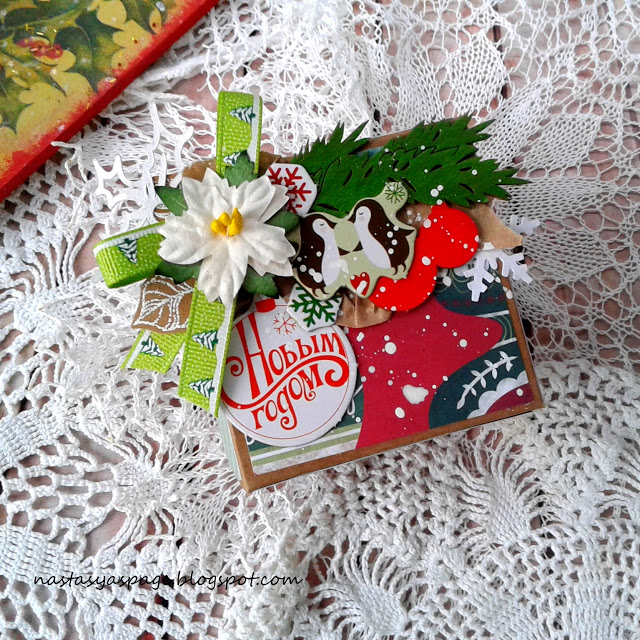 14.01.2019 08:10Зізнаюся чесно, мене спочатку напружило те, що це папір різних колекцій, але з'ясувалося, що навіть по теплоті і контрастності, не рахуючи квітів, все підібрано відмінно. Вінтажна фішечка відмінно доповнила композицію:Ще у мене вийшов маленький і симпатичний Меджік-бокс для подарунка племіннику: