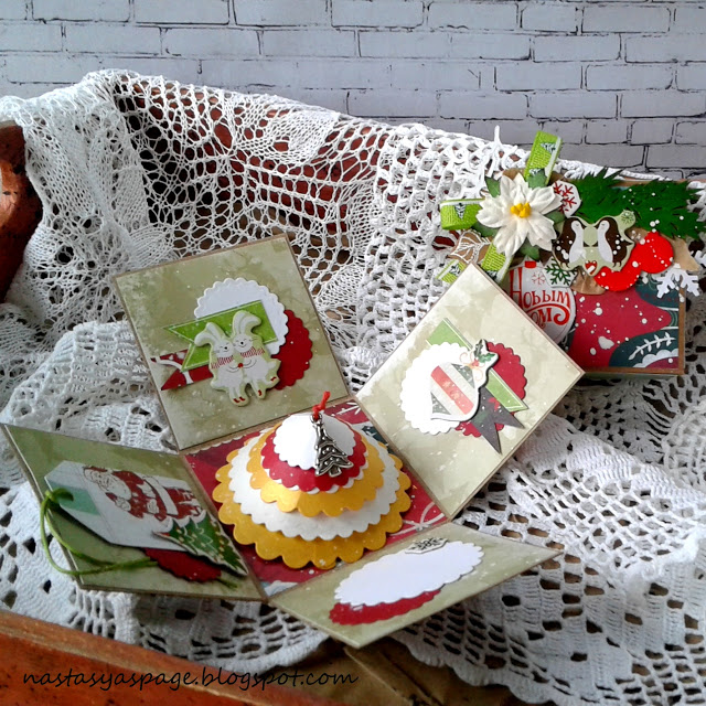 Відкриваємо, а всередині симпатична ялинка, зроблена з дизайнерського паперу, яка також входить в комплект. До речі, під ялинкою я просто сховаю купюру - думаю, племіннику буде дуже цікаво знайти сюрприз)) Стінки Меджік прикрашені милим чіпбордом з нашого новорічного комплекту.