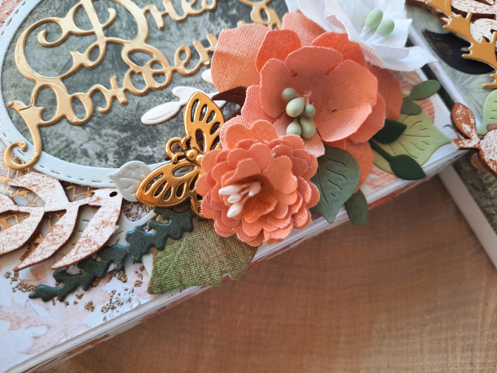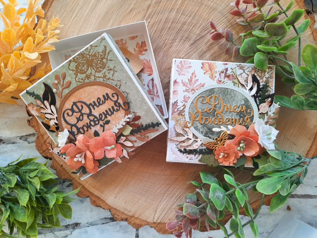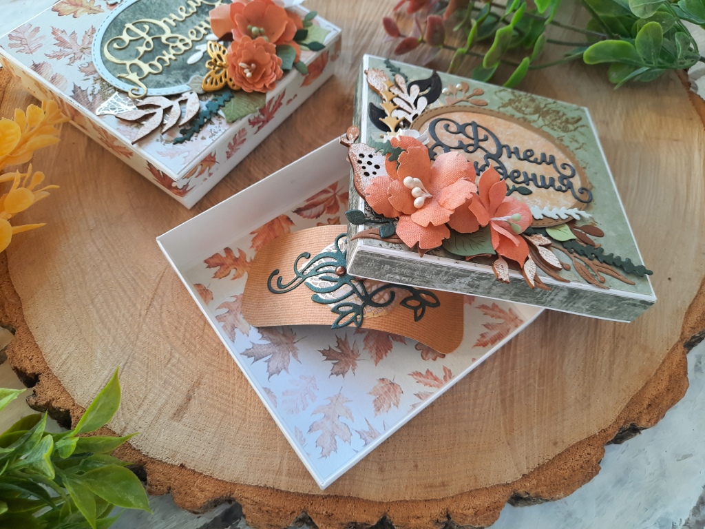 04.10.2020 13:08Вітання! Всім гарного осіннього настрою! Я до вас з двома милими рудо-зеленими коробочками. Під ошатною кришечкою петля для купюр."Наряджати" коробочки атмосферної папером від Craft paper і Фабрики декору. Дуже красиво виглядають вирезалкі золотих листочків з кальки і ембоссінг золотий пудрою від Фабрики. А як мило причаїлася золота метелик серед тканинні квітів! Ну, ви зрозуміли, золотце я люблю)))