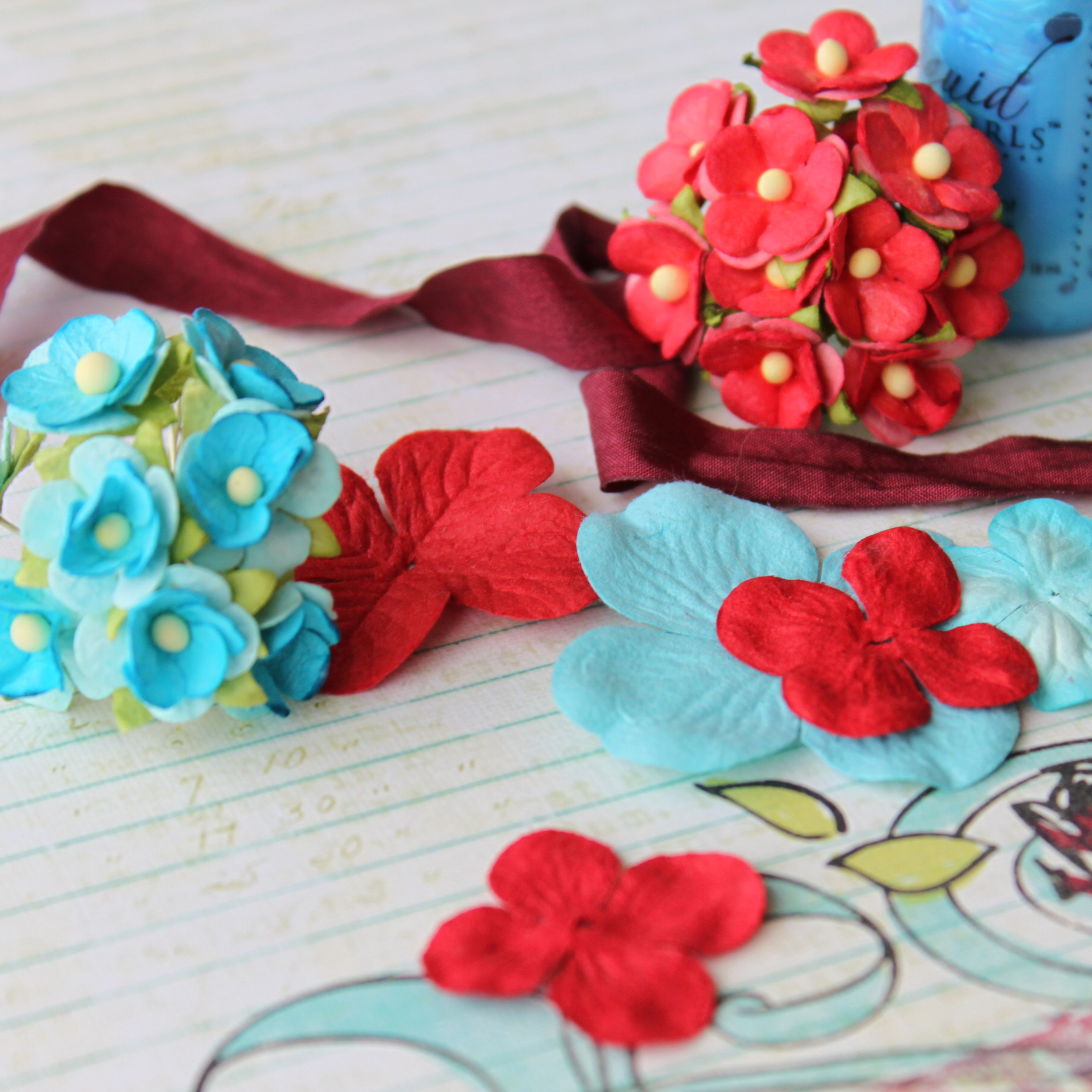 Чудове поєднання паперу від "Magenta" та квітів "Prima".