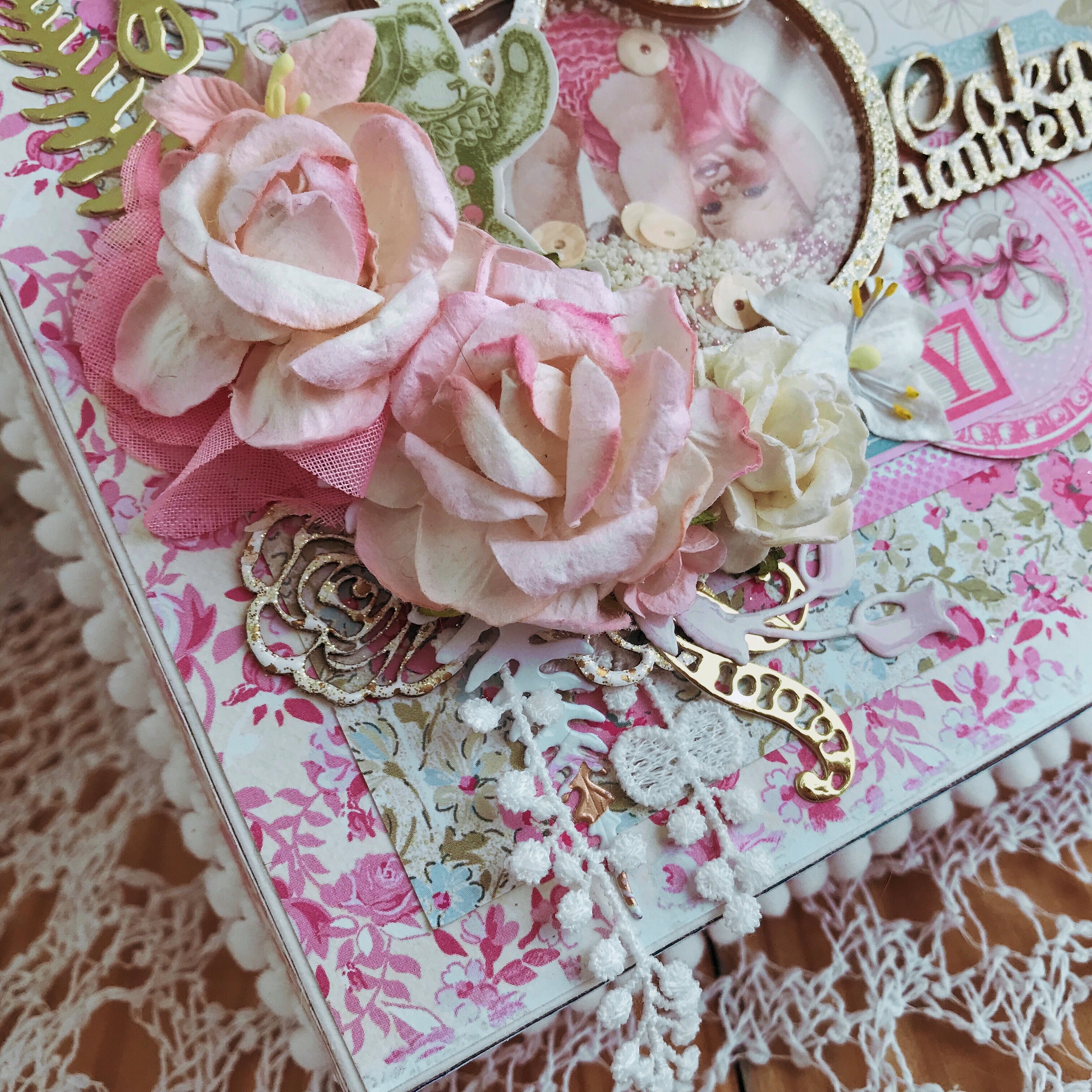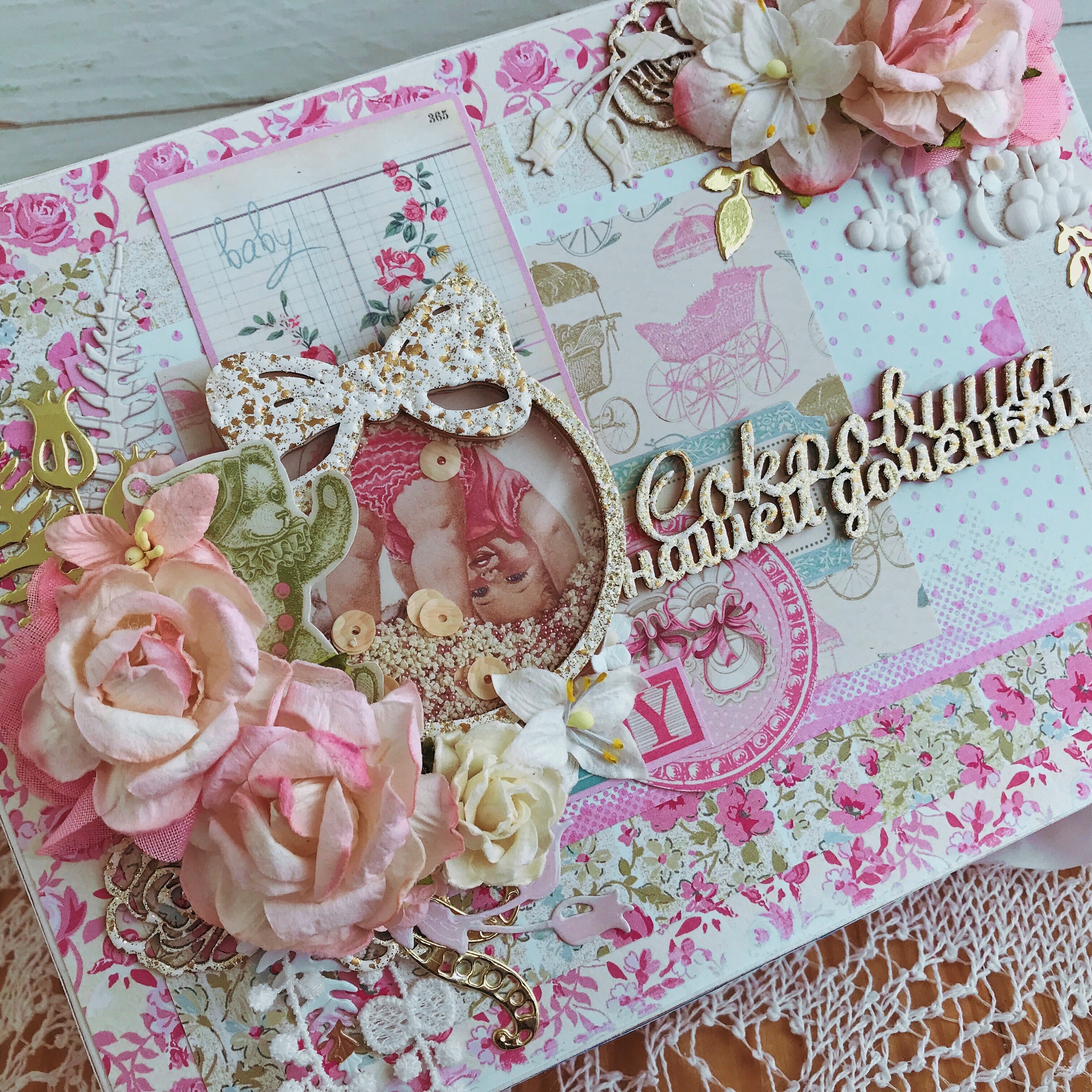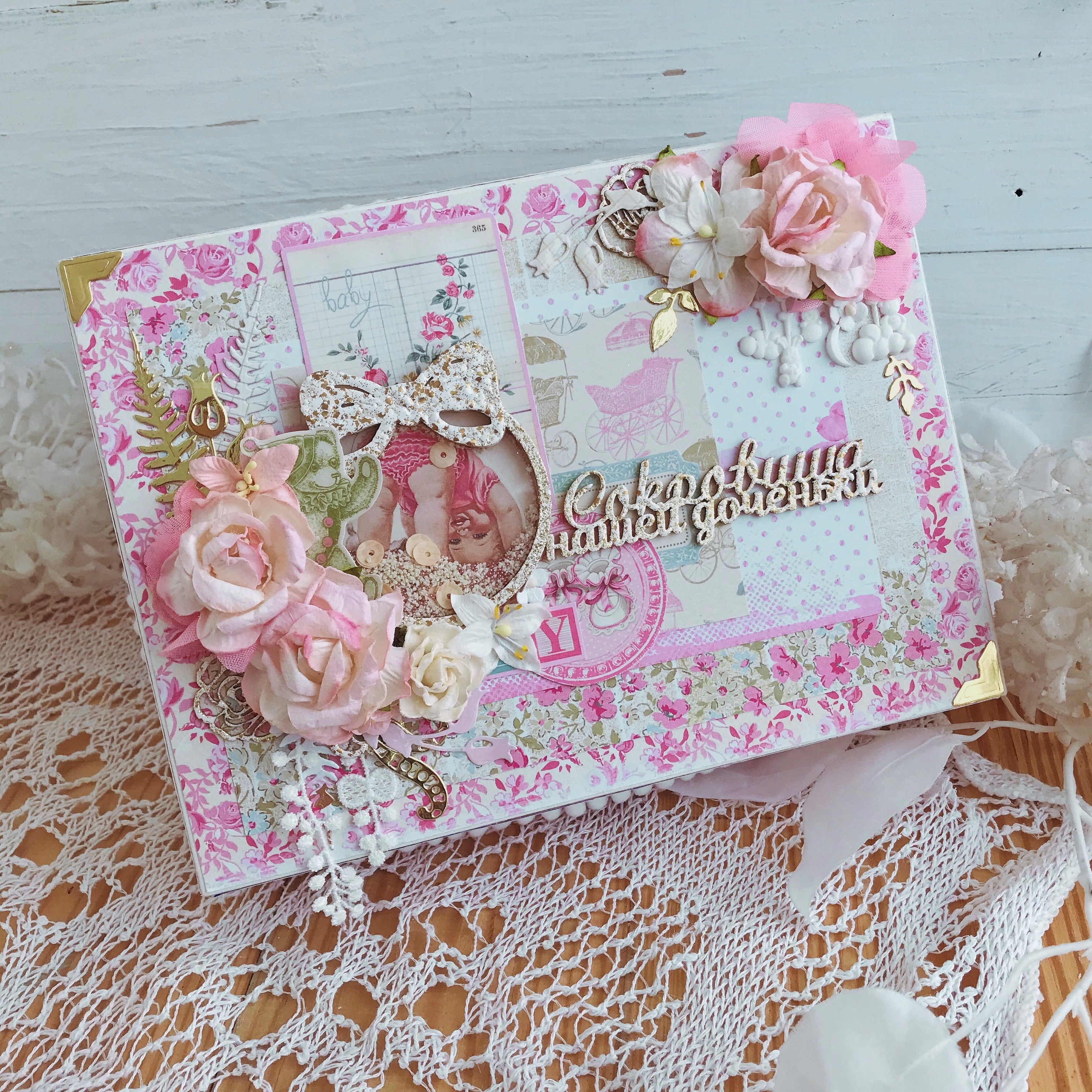 20.04.2019 16:22Детская тема - это всегда нежность, особенно если работа создаётся для маленькой принцессы. Цветы, кружева и немножко золота - что ещё нужно?) Сокровищница получилась нежной и в то же время яркой. Внутри собраны коробочки для ценностей и карточки для записей.