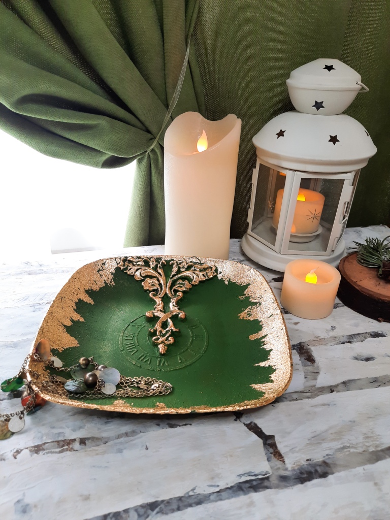 22.12.2020 15:25"Люблю, коли деталі інтер'єру продумані, підібрані по стилю і кольору.Наприклад, підставку для прикрас я робила в тон шторами. Для цього я змішала акрил для декору від Rosa трьох відтінків: темний зелений, охра, коричневий. Вийшов глибокий теплий зелений матовий відтінок.