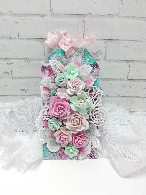 Добрый день, дорогие наши читатели. Цветочки я очень люблю, а тем более их много у нашего спонсора. А так же я использовала чип: ТЭГ и РАМКА. И еще я использовала сухую краску Фабрика Декора их большая палитра представлена на сайте.