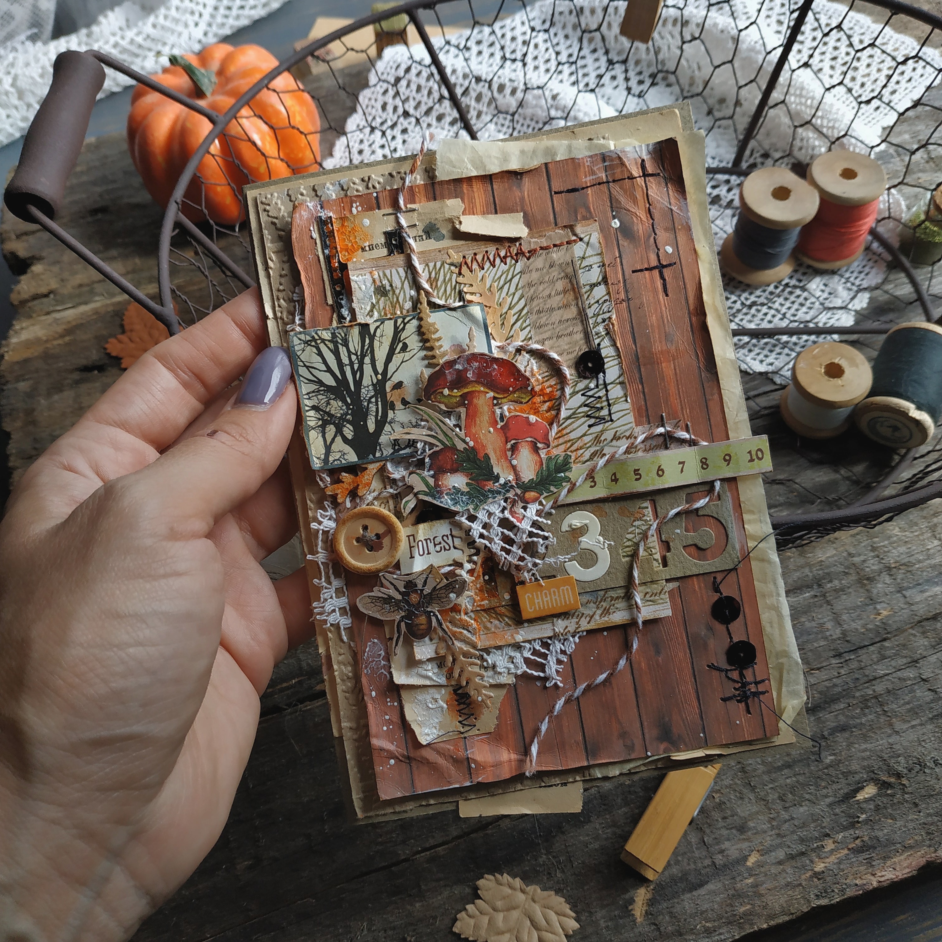 украшения и прекрасный осений декор взяла из Ботанического набора, использовала его не весь, готовлю ещё одну работу с ним.