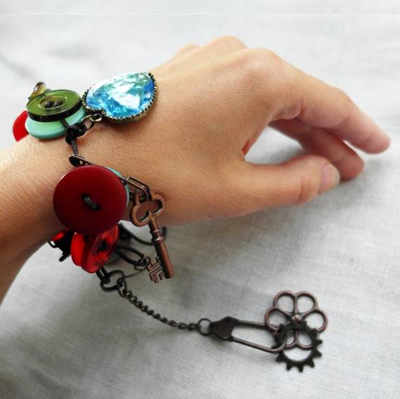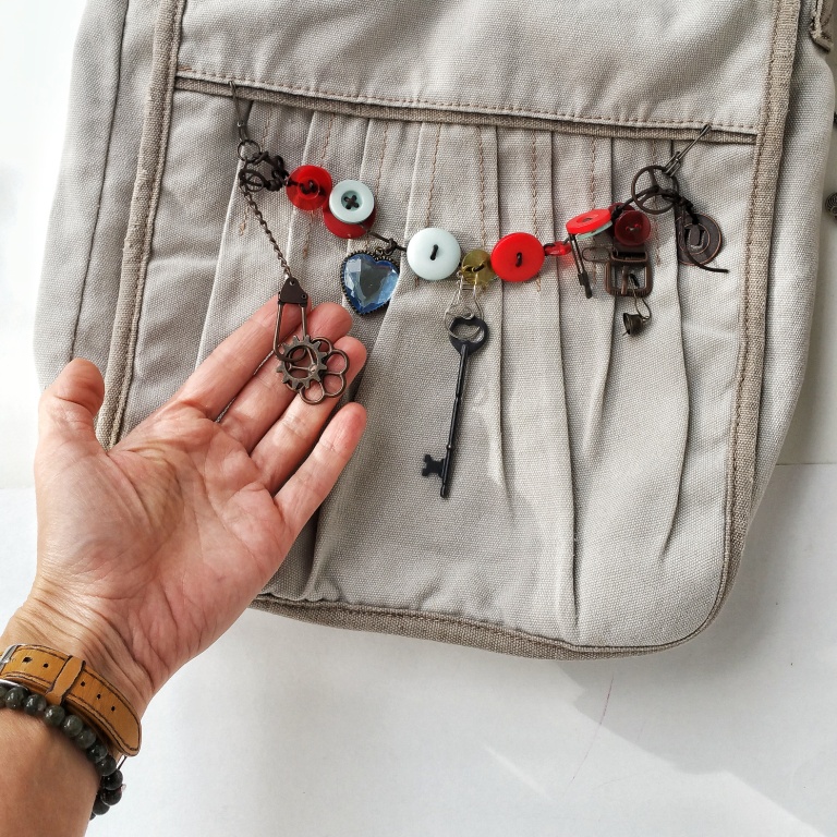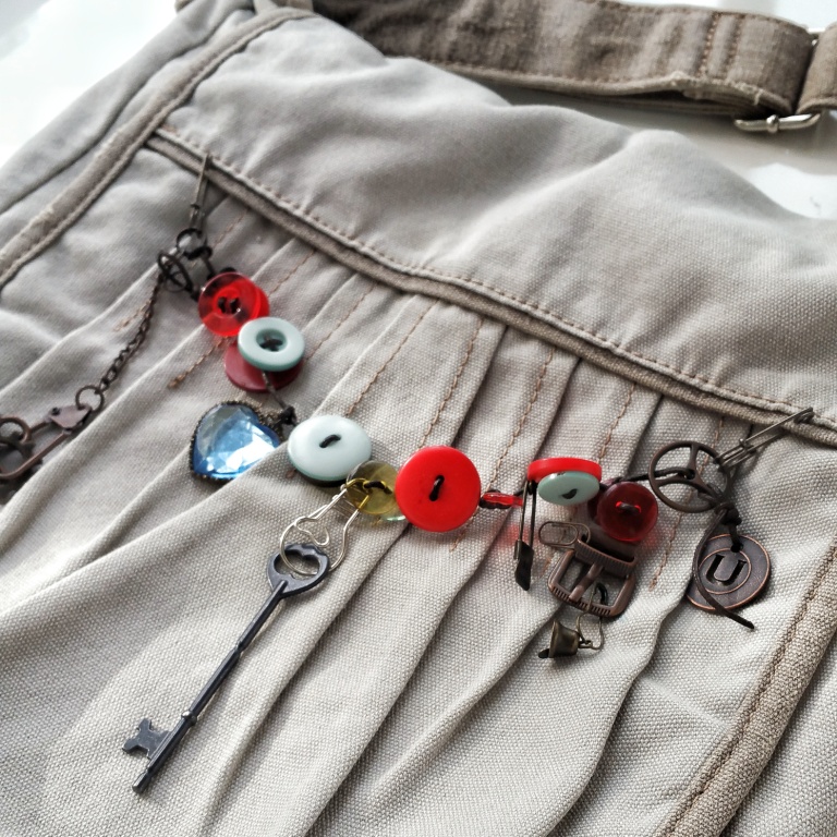 Сумка мрії або друге життя браслета)Браслет теж був незвичайний - скрапова! Я зробила його з найкрасивіших гудзичків і підвісок Тіма Хольца і Прими)Але носити якось не склалося - він просто висів біля мого робочого місця і радував погляд.Але коли я побачила просту сумку - ідея відразу прийшла, що бути сумці прикрашеної цим браслетом!2 шпильки Хольца і Вувля! - браслет перетворюється в елегантний декор!А якщо у вас загубився язичок від замка на сумці - скрап-підвіски вирішать будь-яке питання на будь-який запит!Люблю скрап!Люблю @ tvorcha.com!