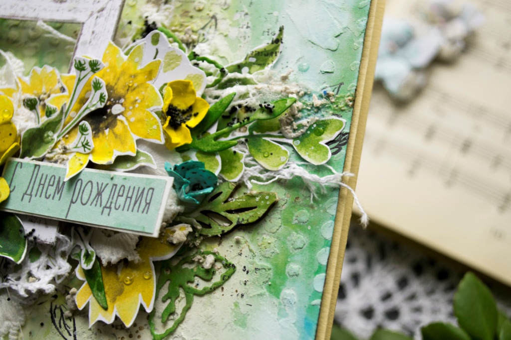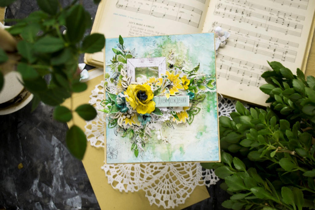 09.06.2021 14:09Яскрава і дуже літня листівка. Сподіваюся що і до нас прийде справжнє літо не тільки за календарем. Фон зроблений з нуля за допомогою трафарету і текстурної пасти забарвлювала сухими фарбами. Квітка також пофарбований за допомогою сухих фарб. Сонечка і тепла всім нам!