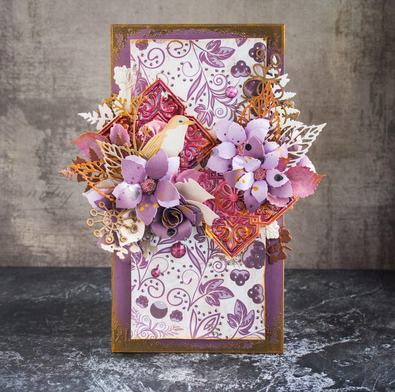 Привет, друзья! Расскажите, как выглядит ваш ноябрь, какого он цвета, с каким настроением? Свой ноябрь я выразила в новой открытке, он холодный и имеет цвет сливы. Пора настраиваться на Рождество, скоро будем творить волшебство.