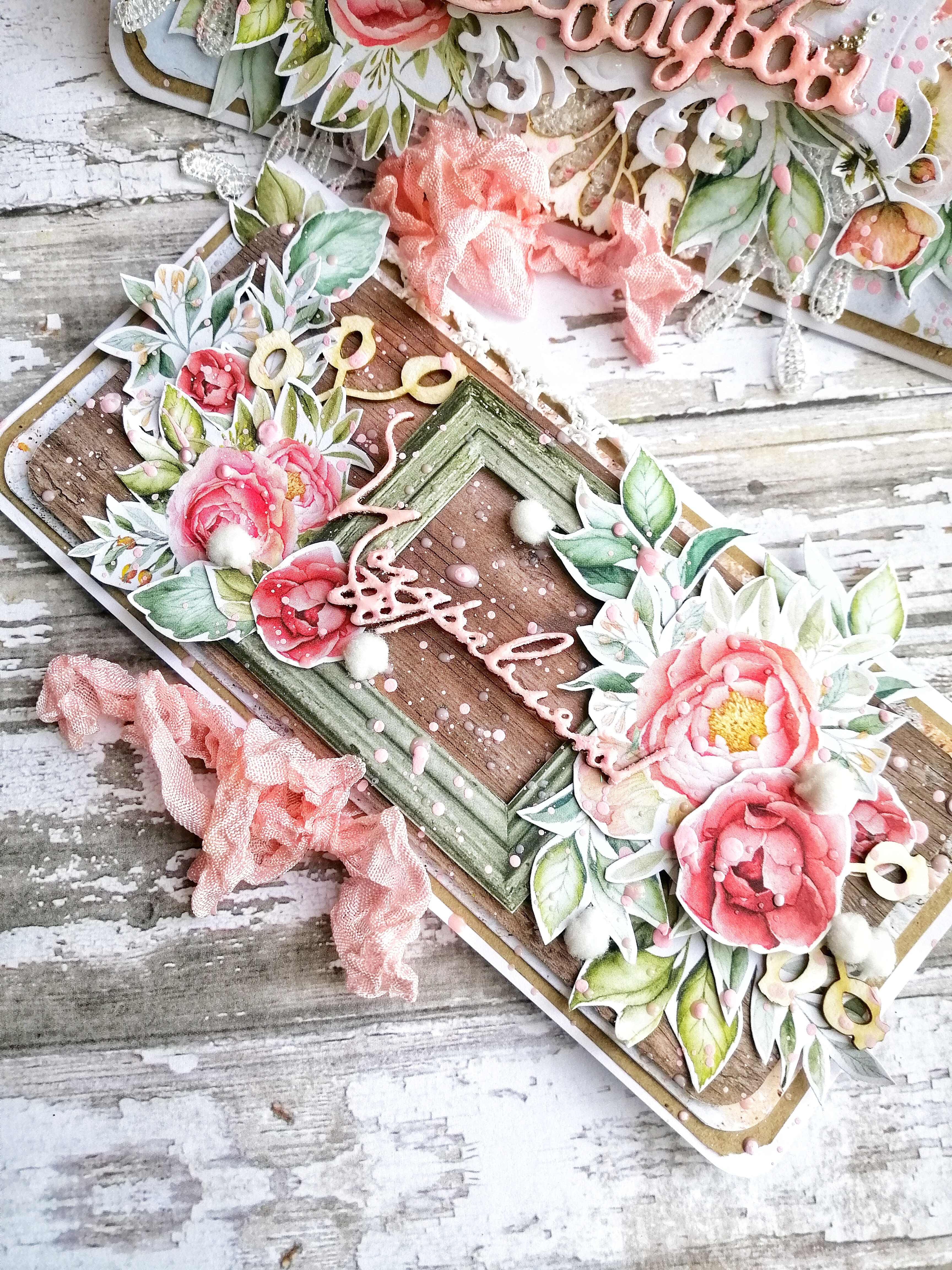 В этот раз попыталась совсем не использовать объёмные цветы, а только высечки и вырезалки и вот, что получилось