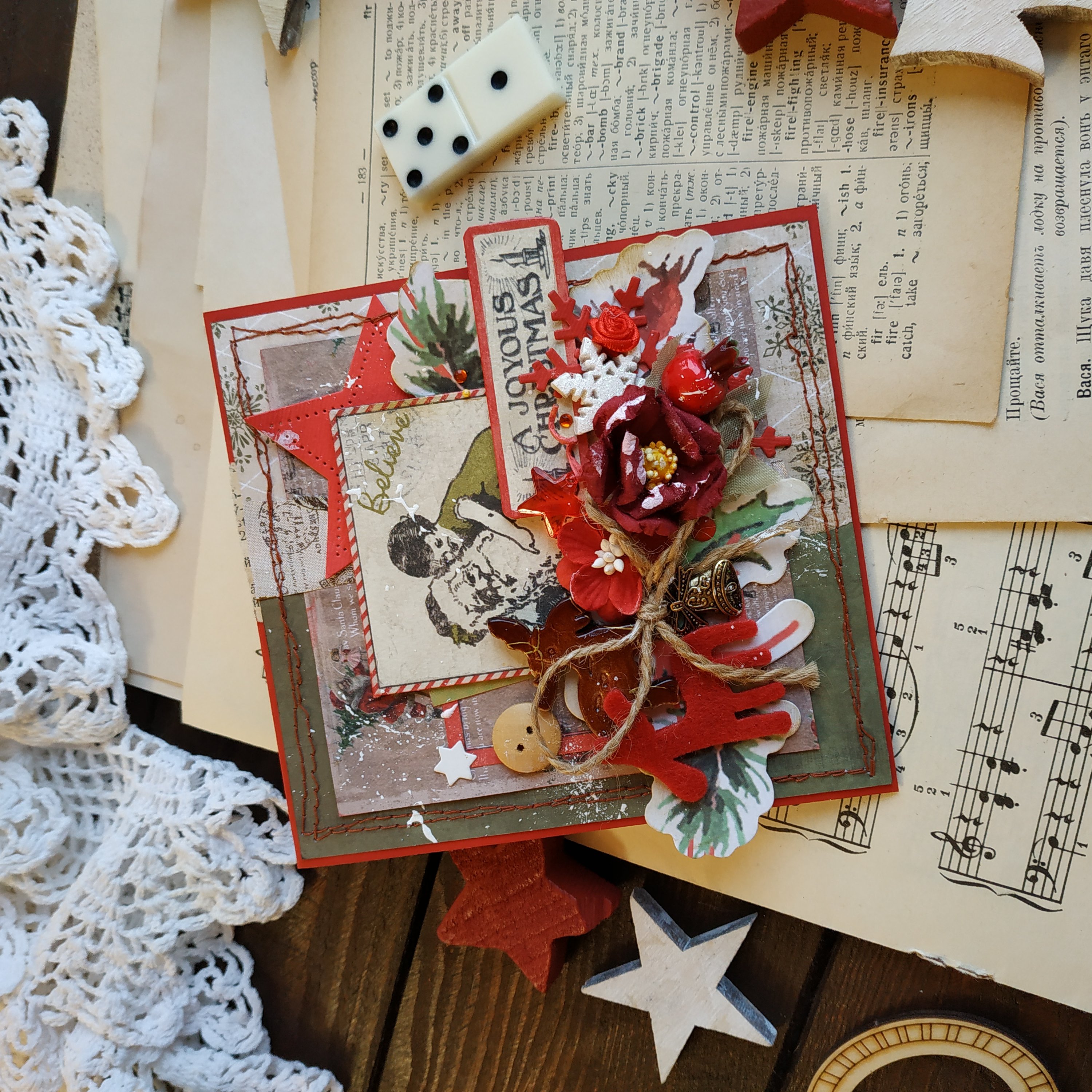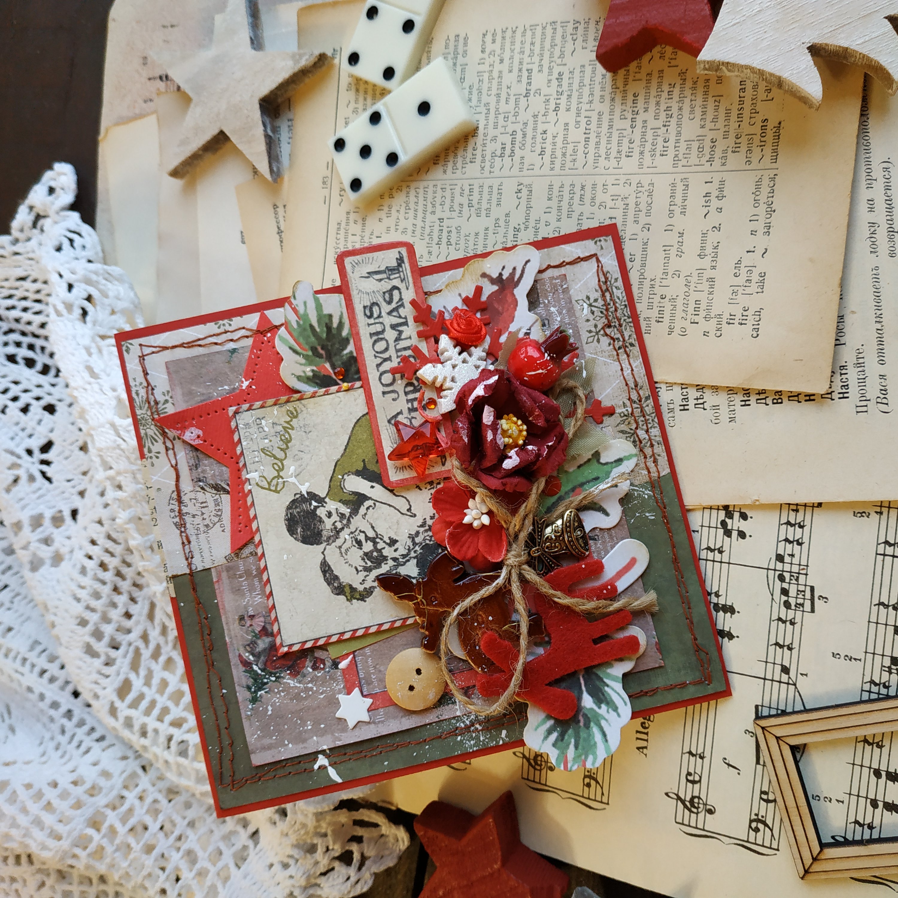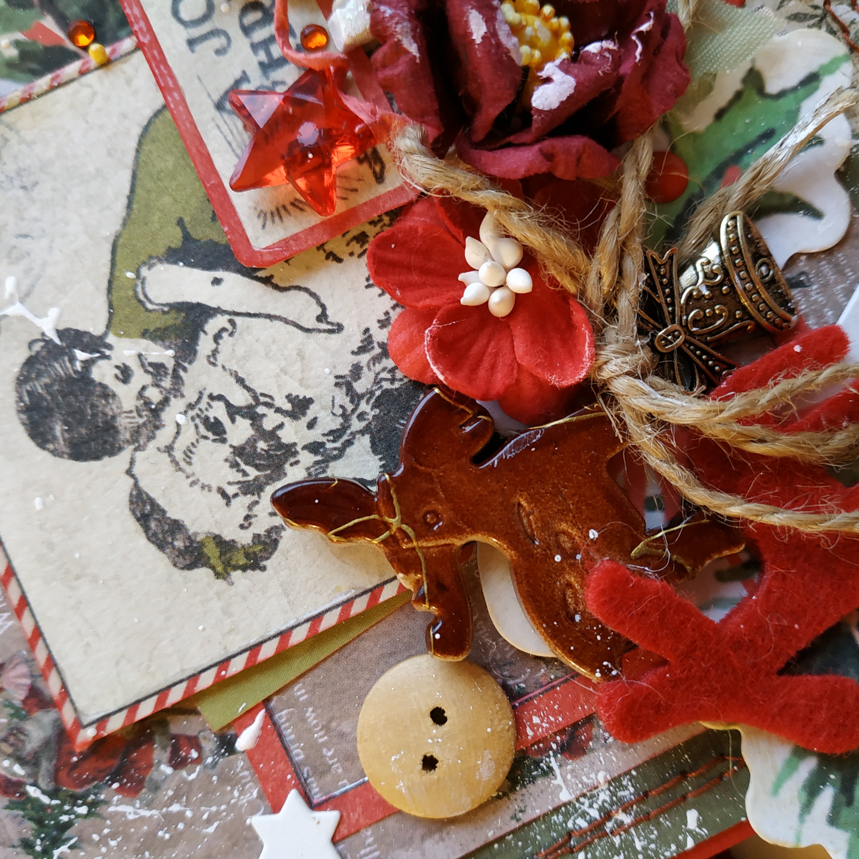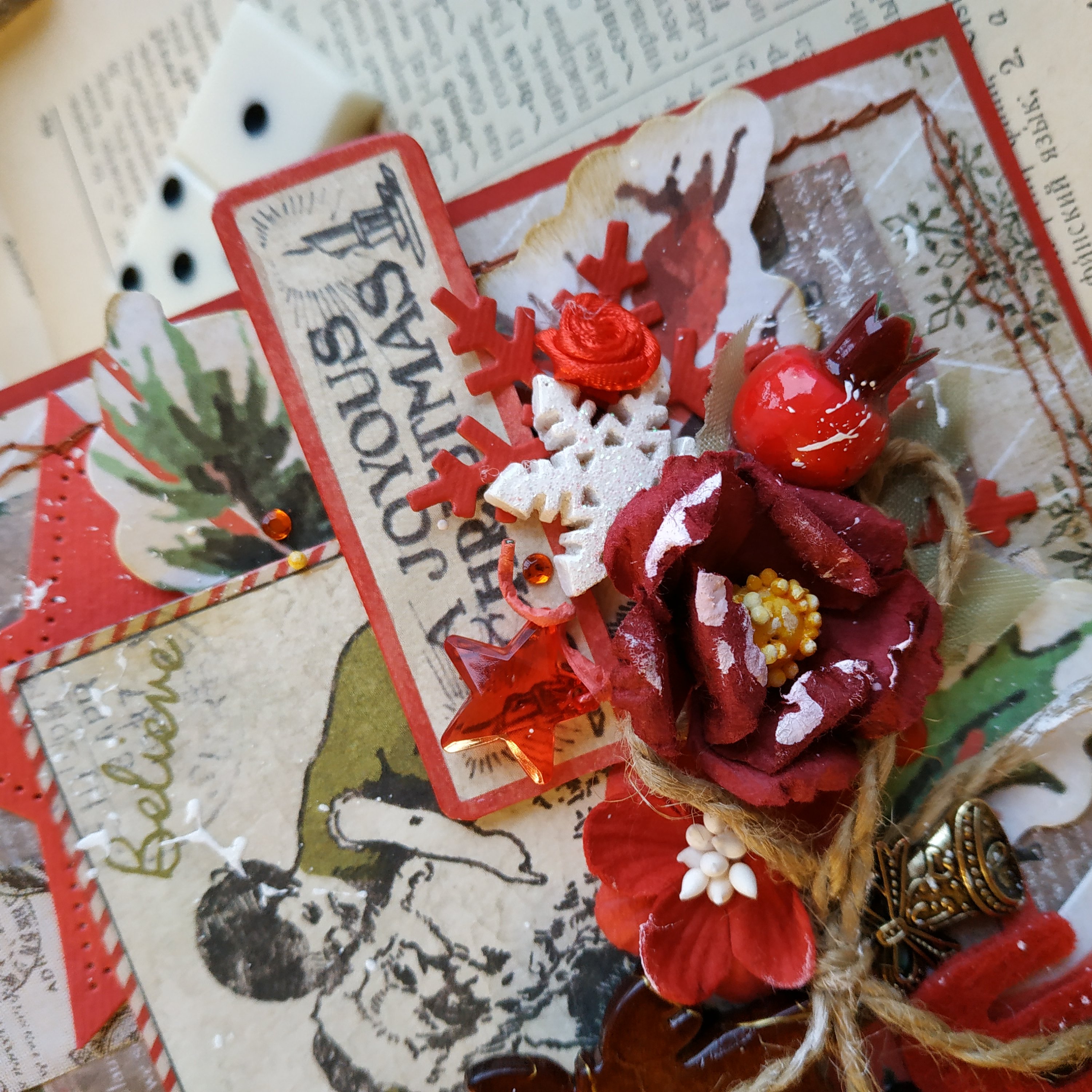 Из листа вырезала надпись и карточку Двусторонняя бумага Magical Santa Collage 30х30 см от Authentique Paper