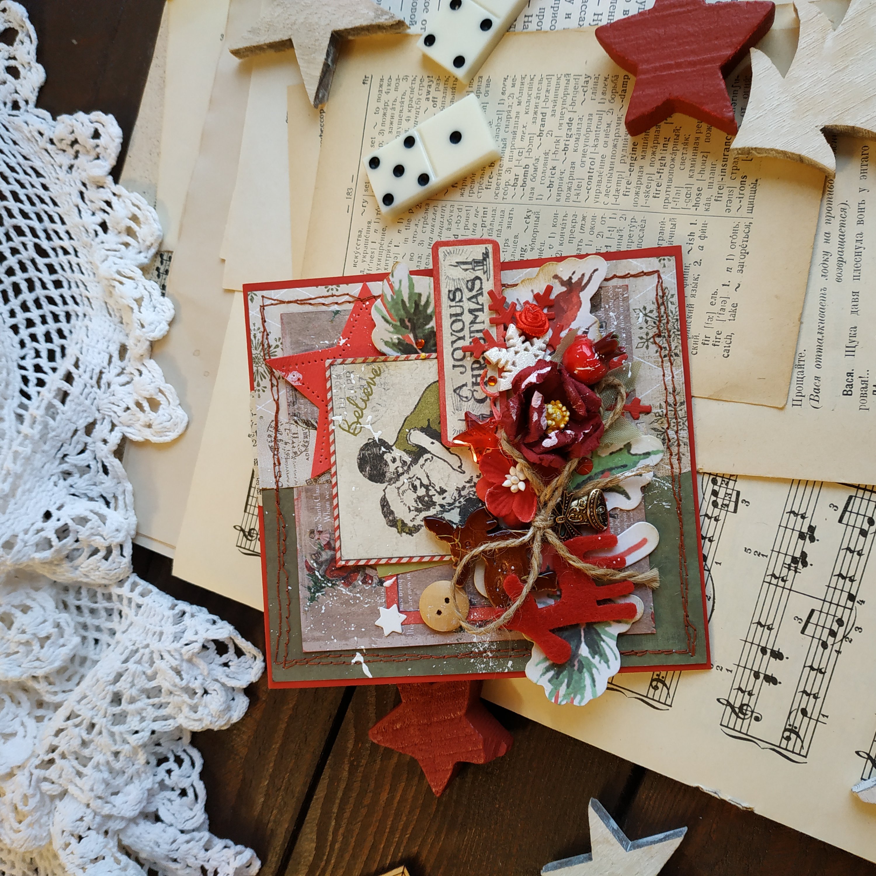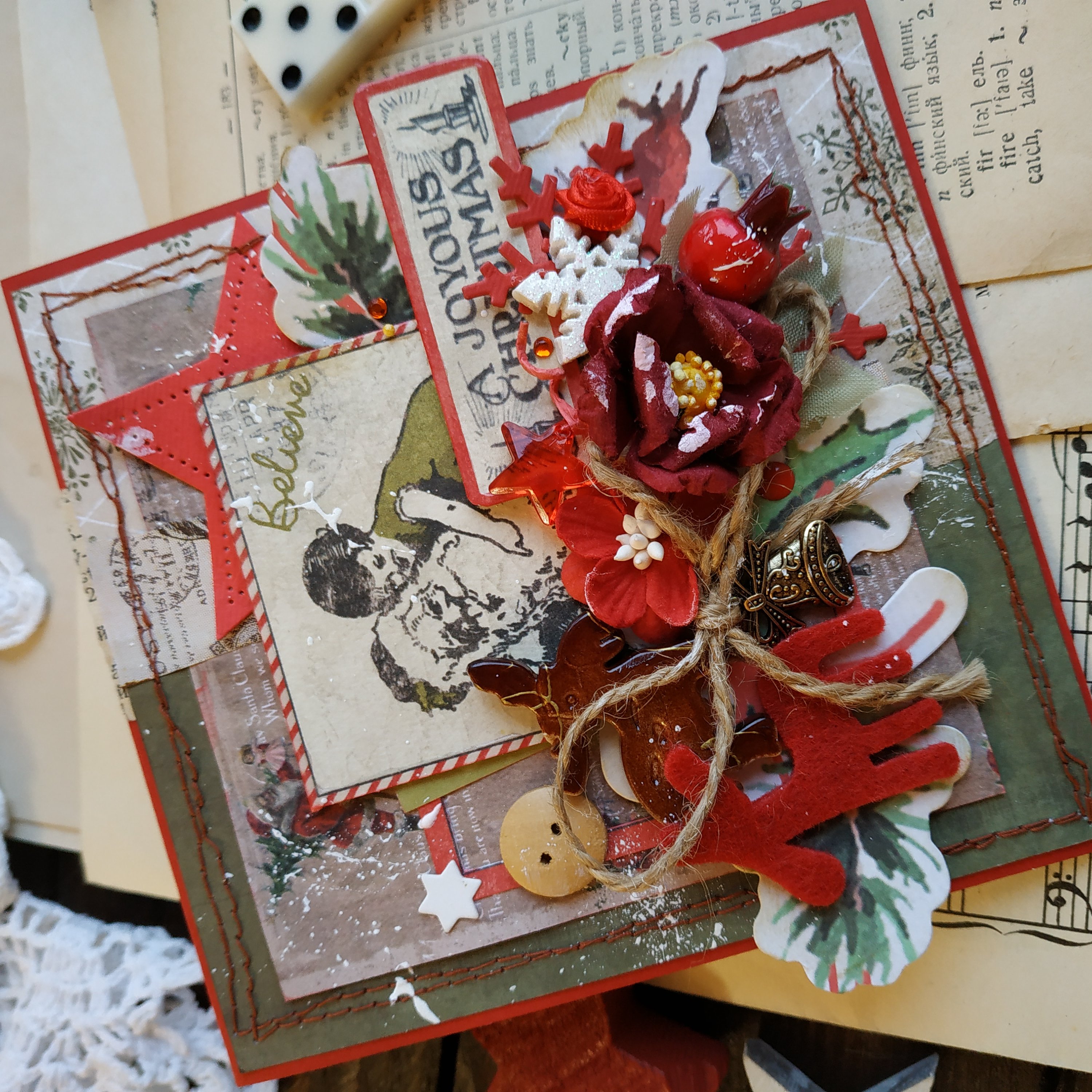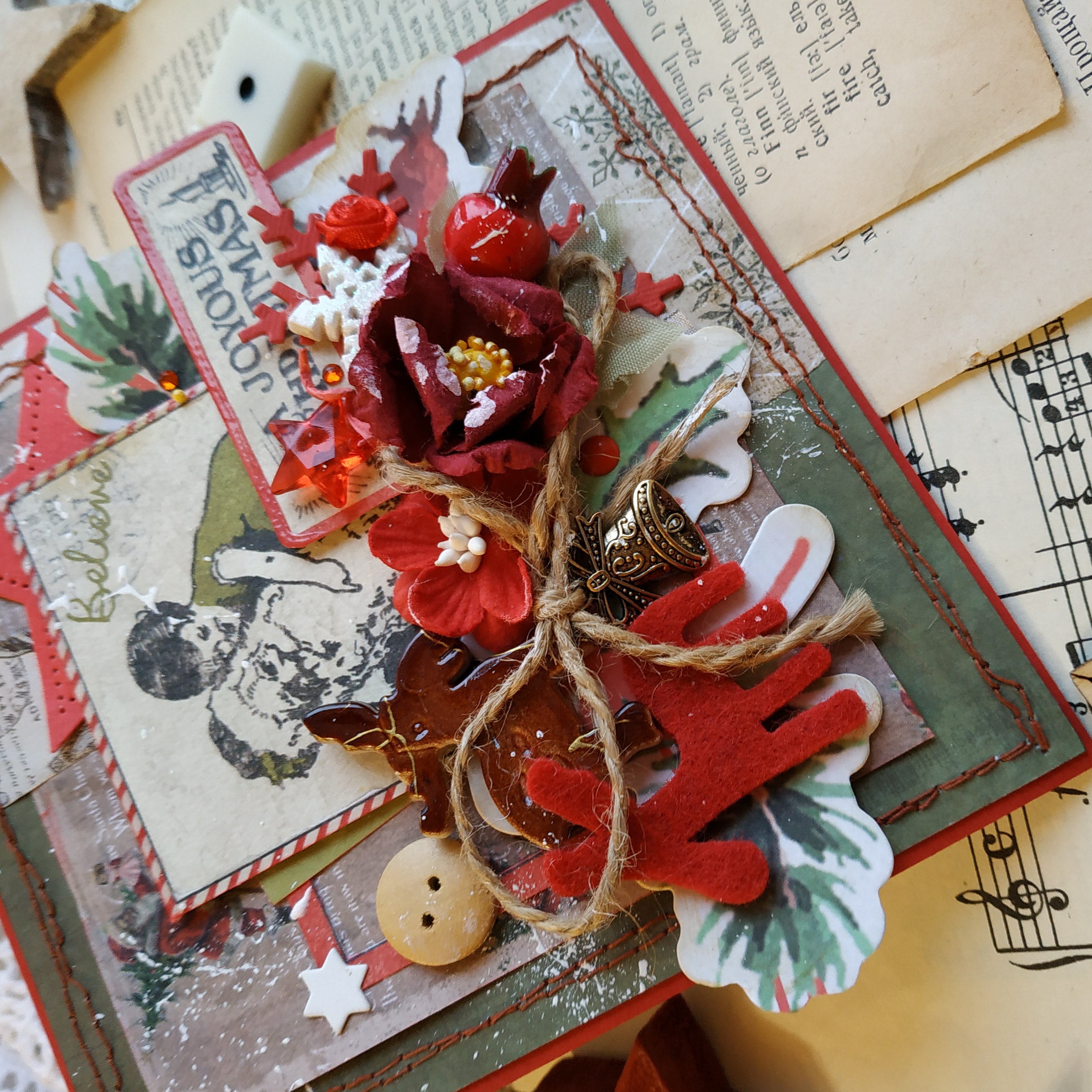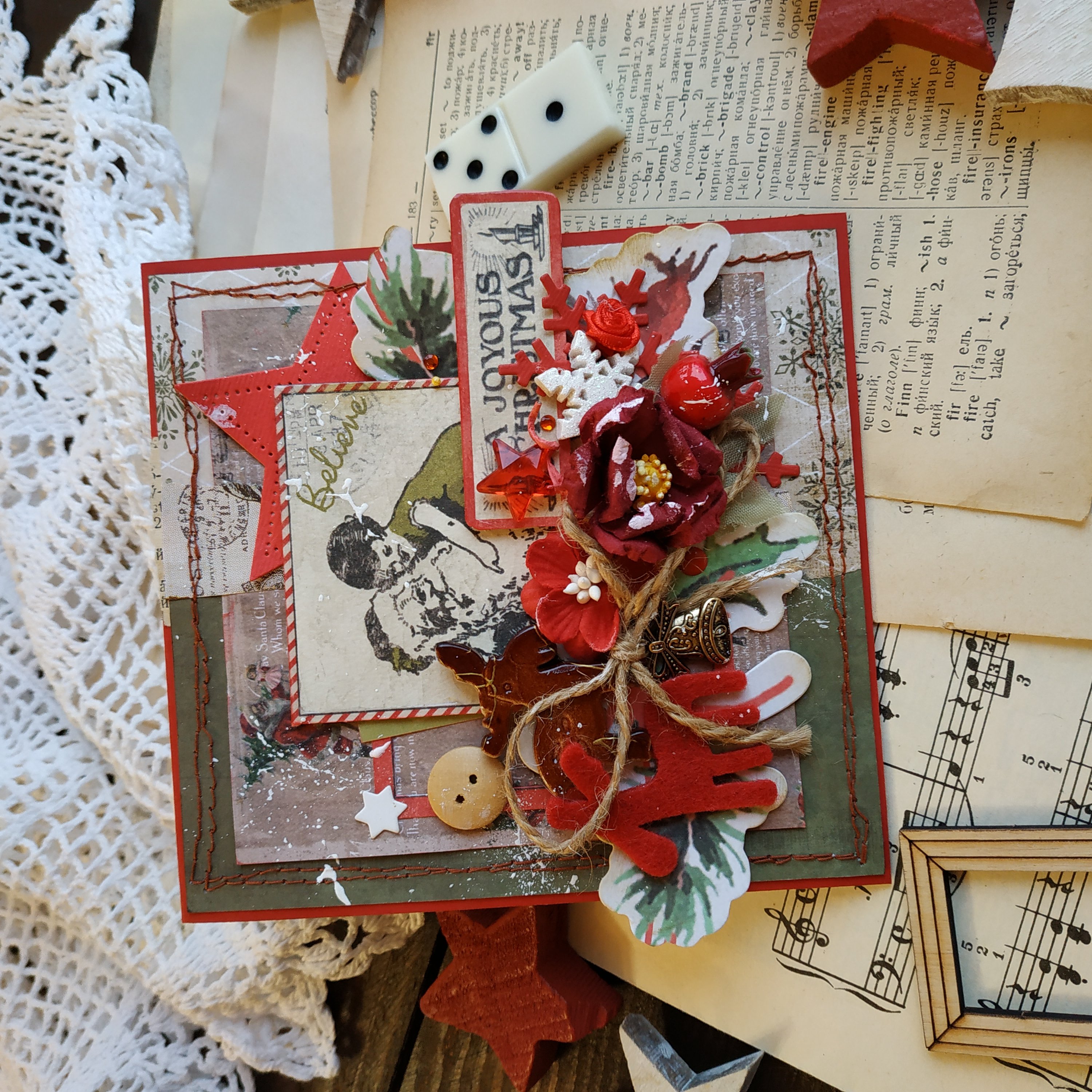 Из листа вырезала надпись и карточку Двусторонняя бумага Magical Santa Collage 30х30 см от Authentique Paper