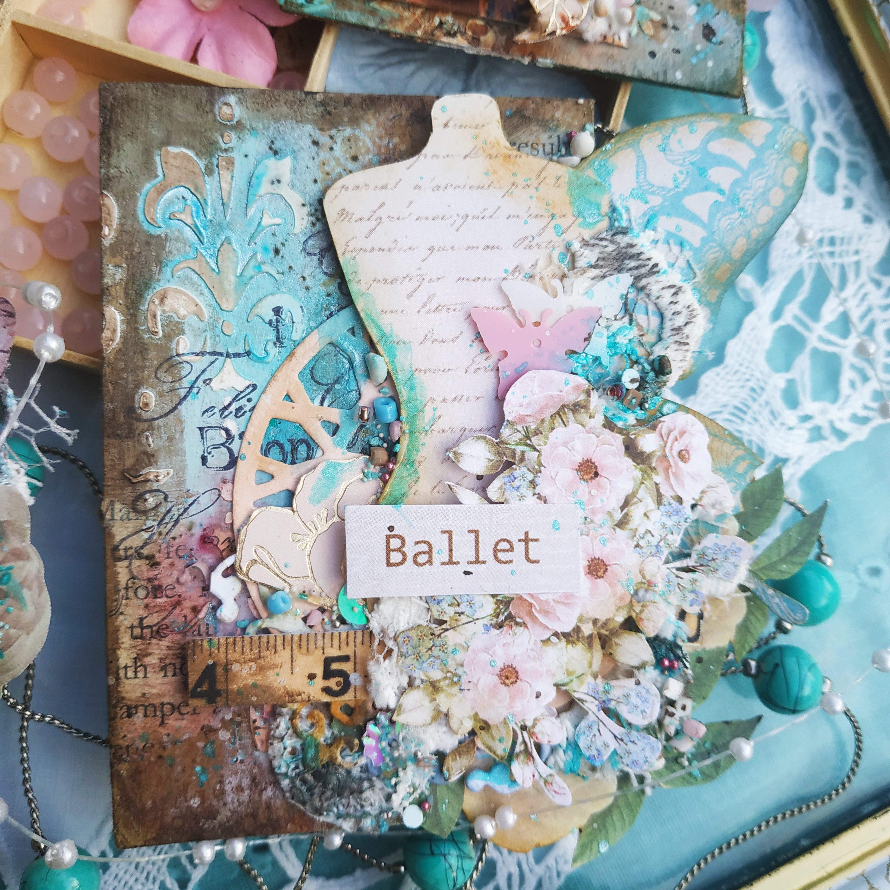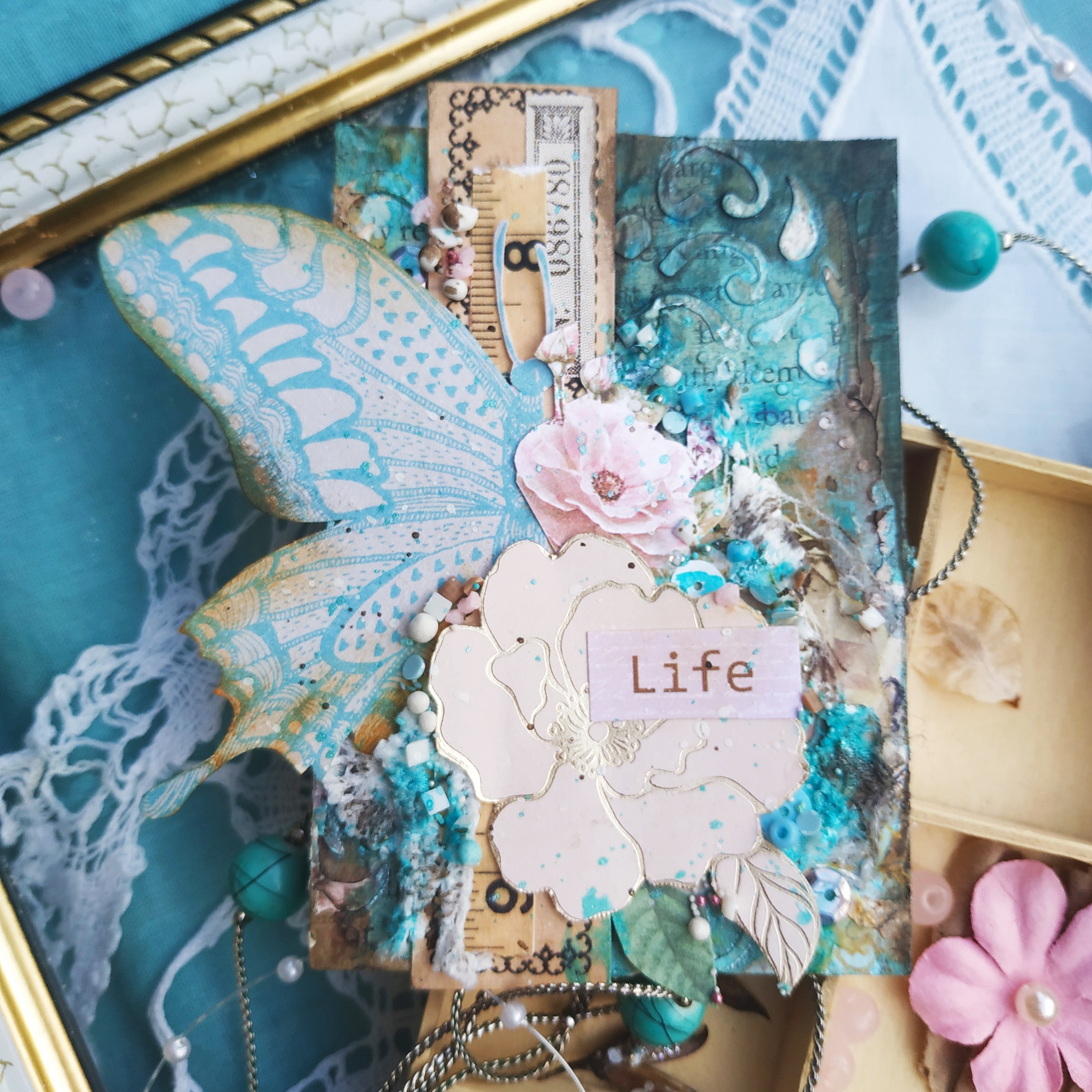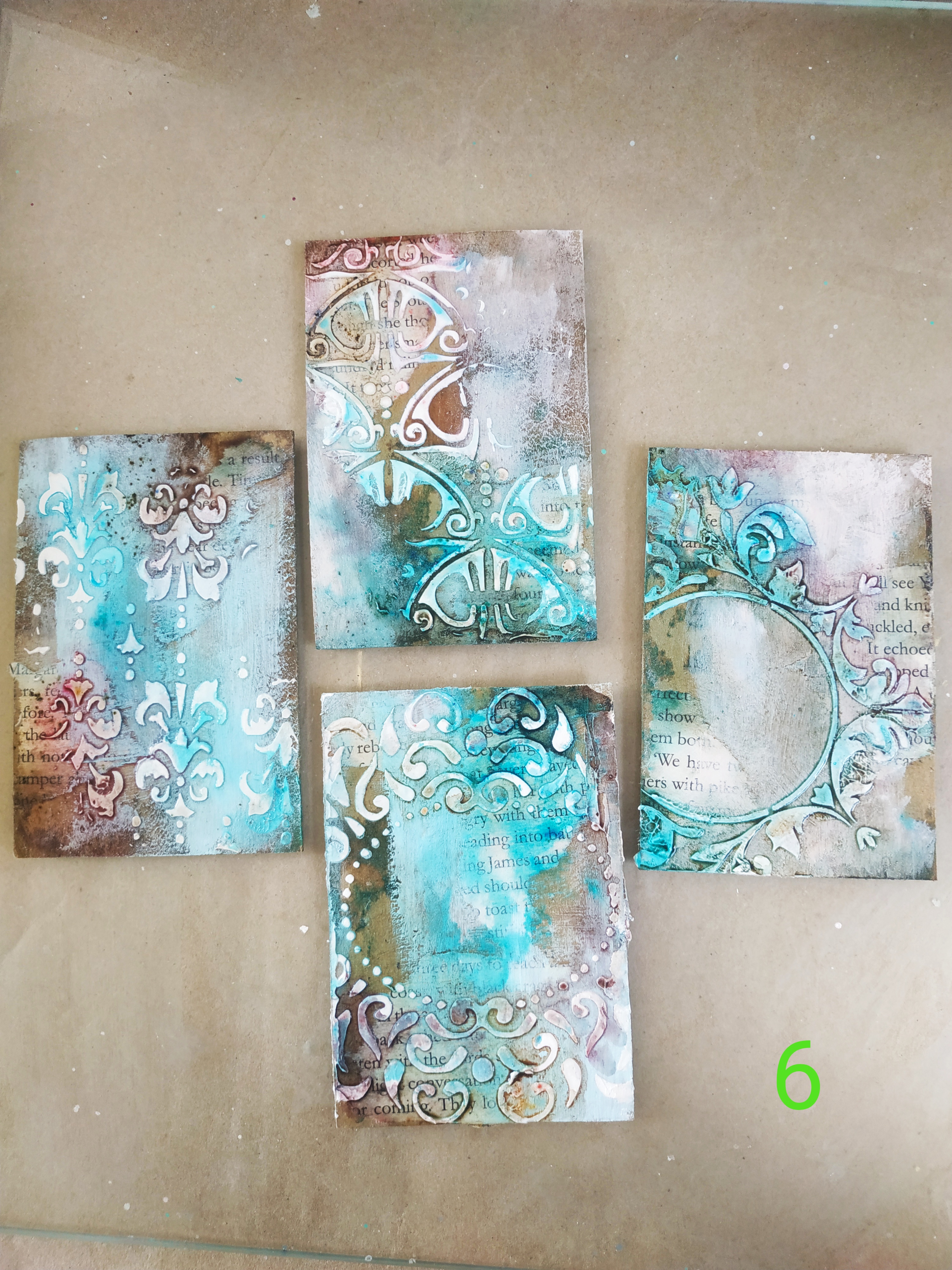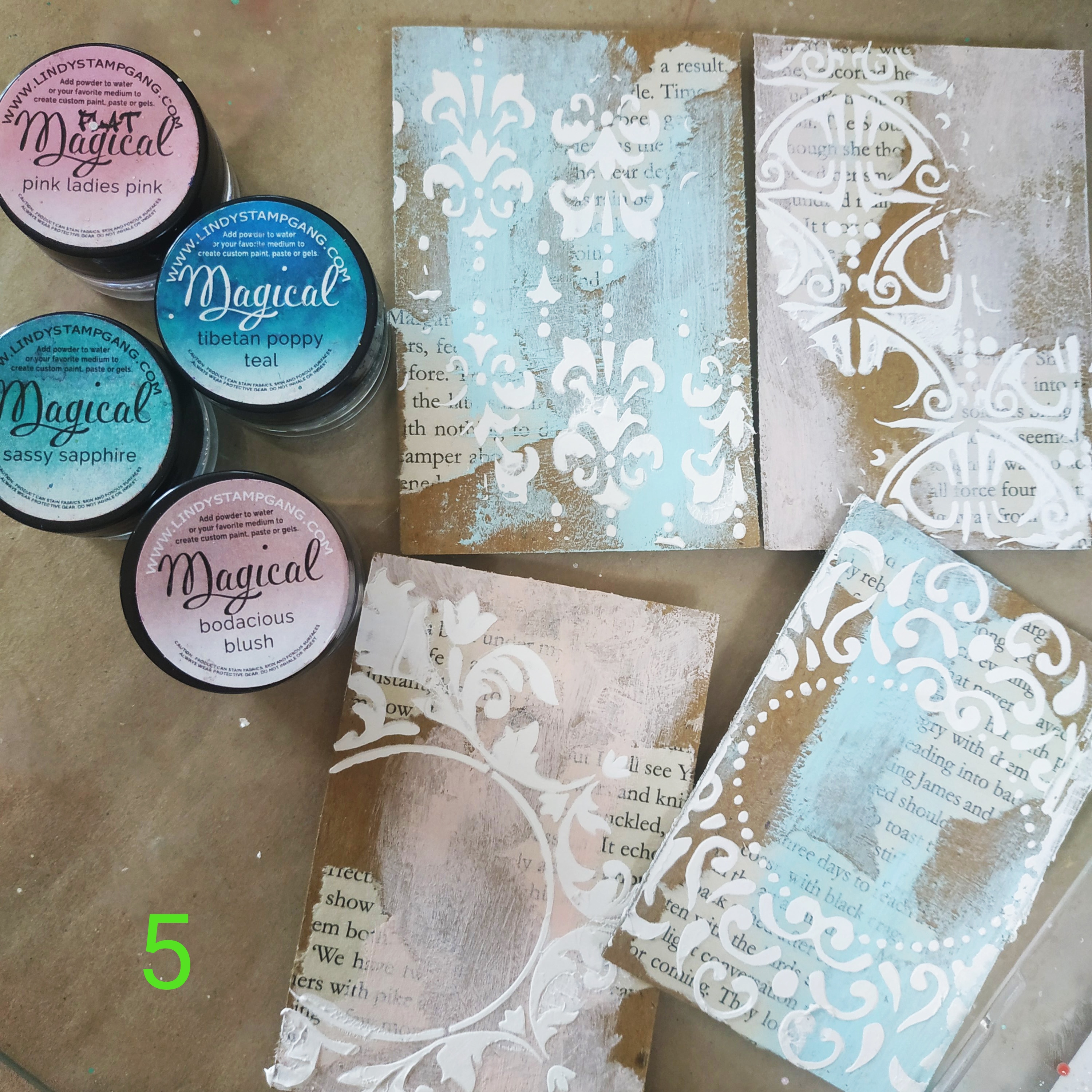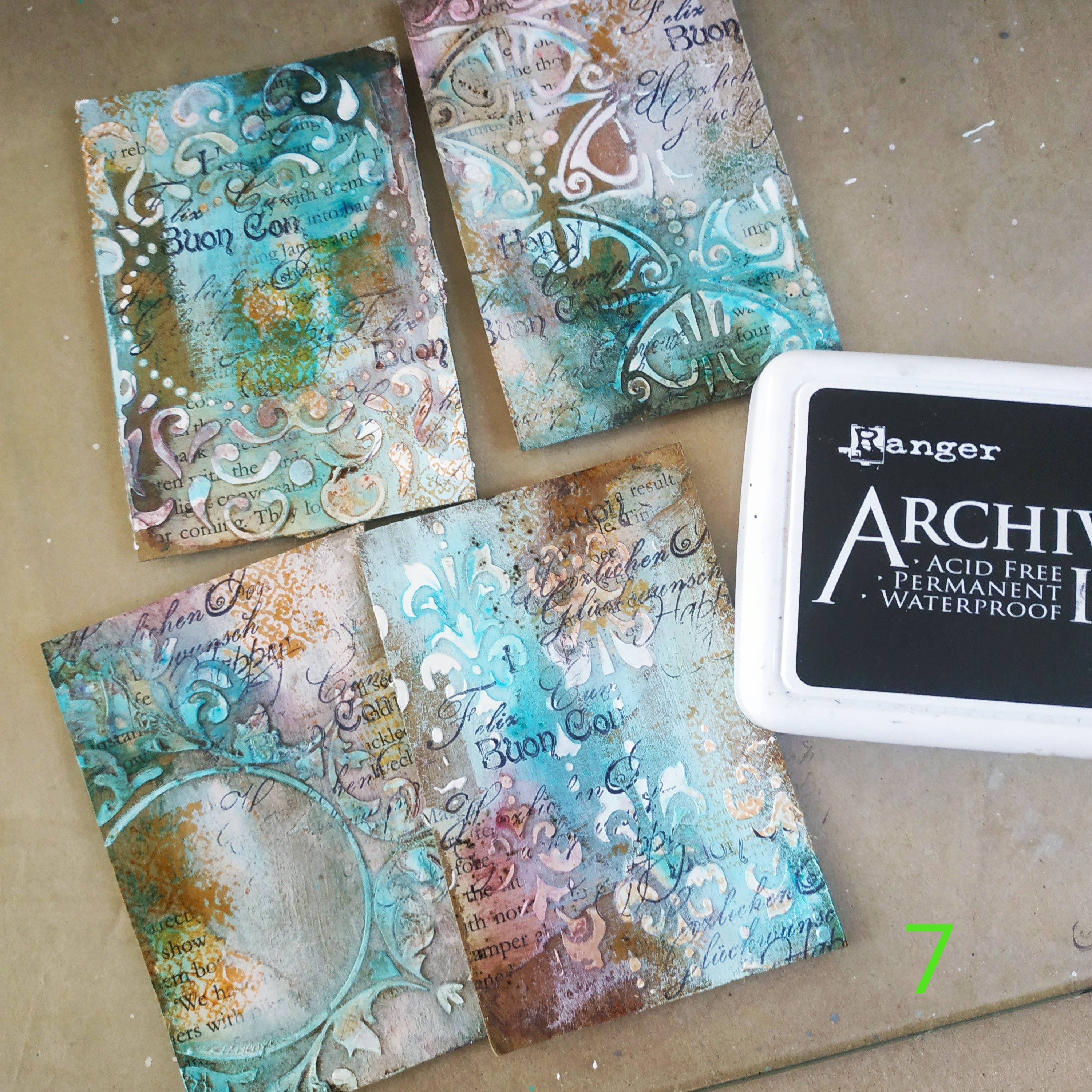 3 После нанесена текстура через трафарет. После того как паста высохла с помощью сухих пигментов от @lindysgang добавила цветовые акценты. После фоновыми штампами дорабатываем фон.